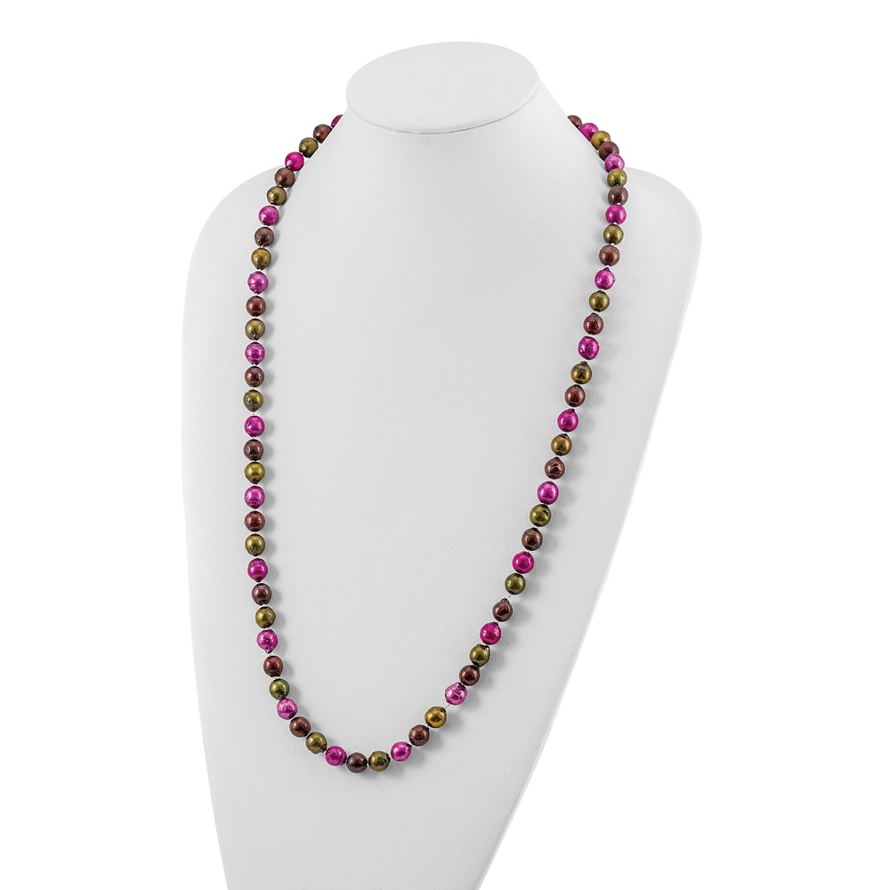 Brown, Olive & Fuchsia 9-10mm Freshwater Cultured Pearl Necklace