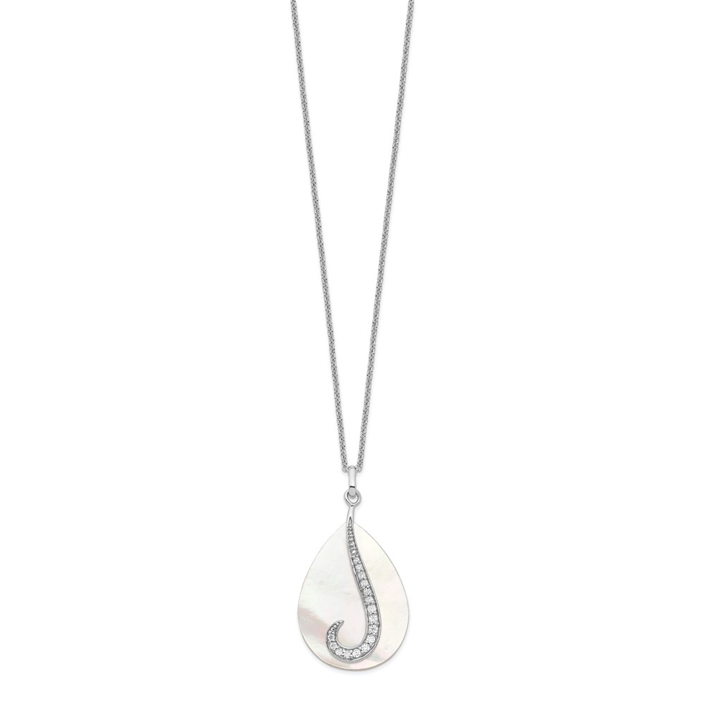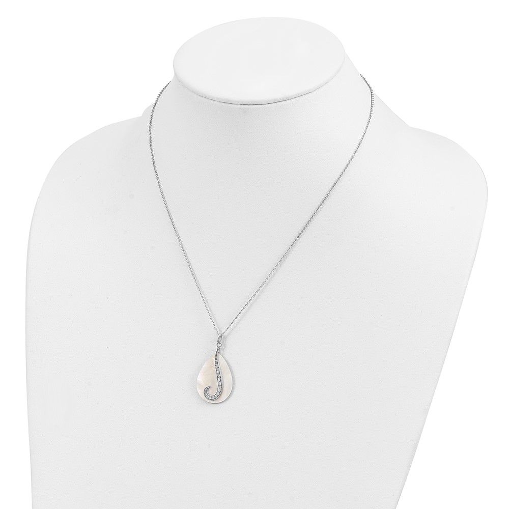 Sentimental Expressions Sterling Silver Rhodium-plated Mother of Pearl CZ Tear From Heaven 18in Necklace