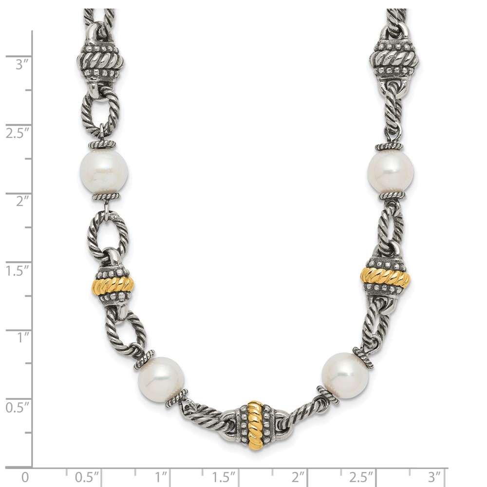 Shey Couture Sterling Silver with 14K Accent 18 Inch Antiqued 8mm Freshwater Cultured Pearl Necklace
