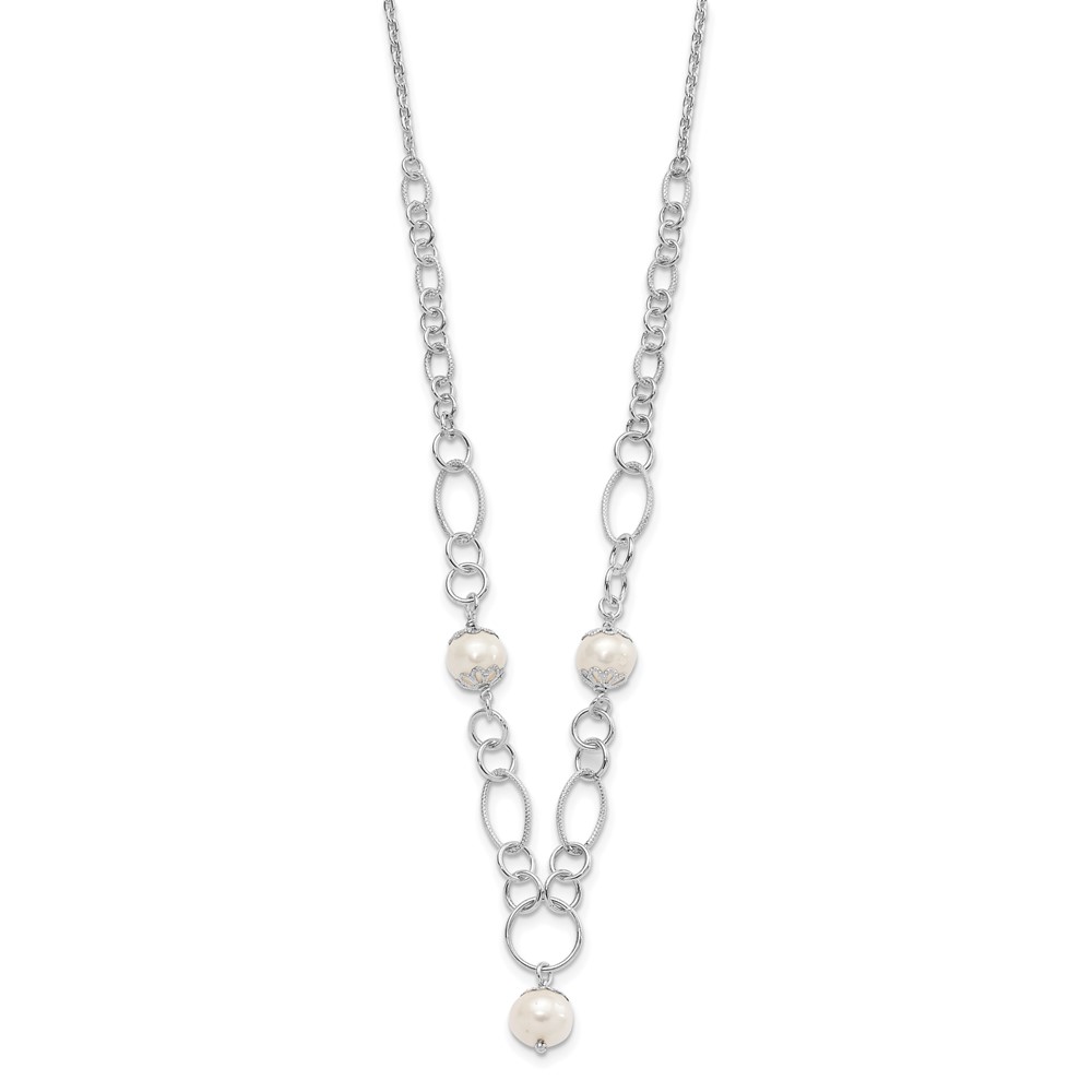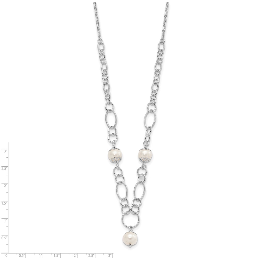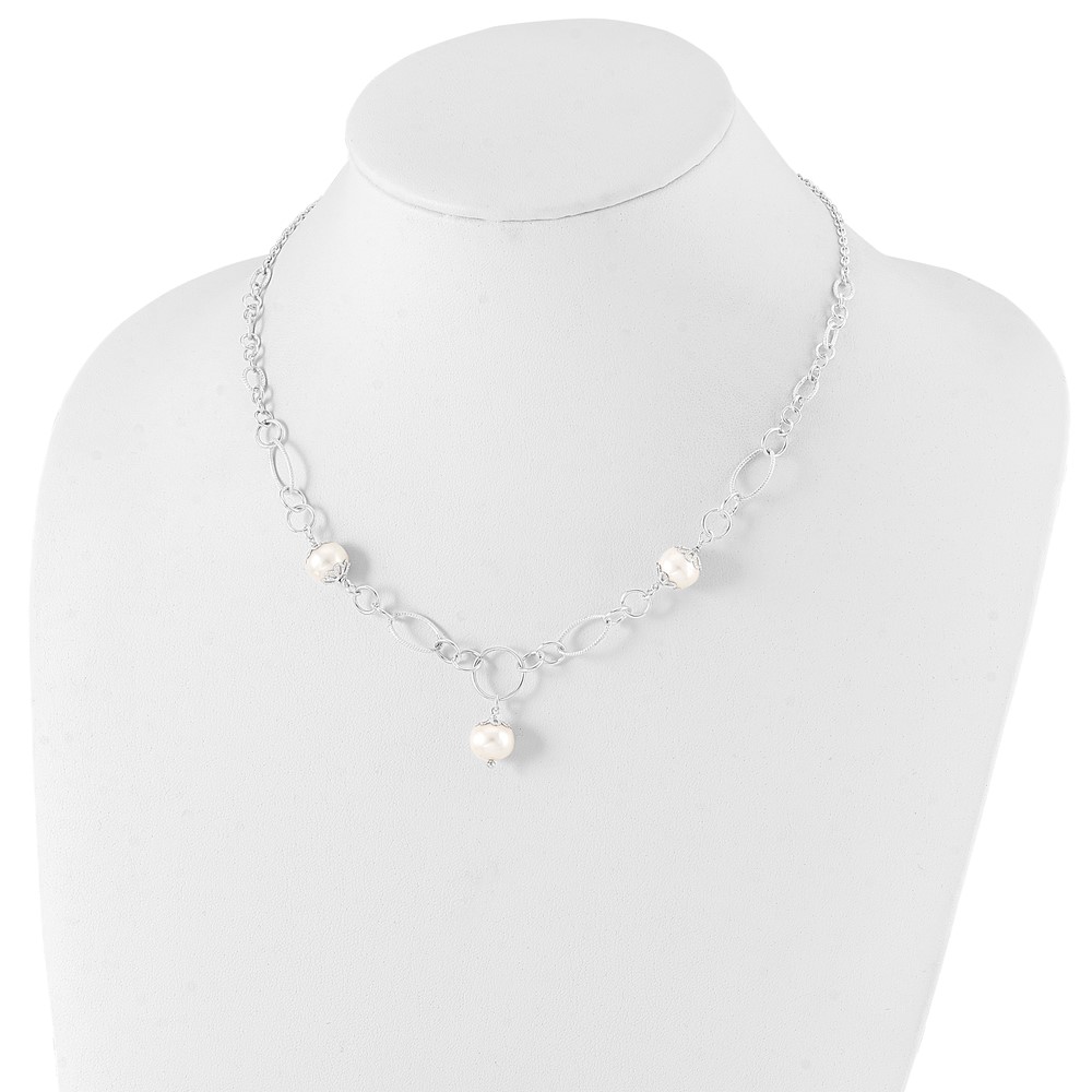 Sterling Silver Polished Fancy Simulated Pearl Drop Necklace