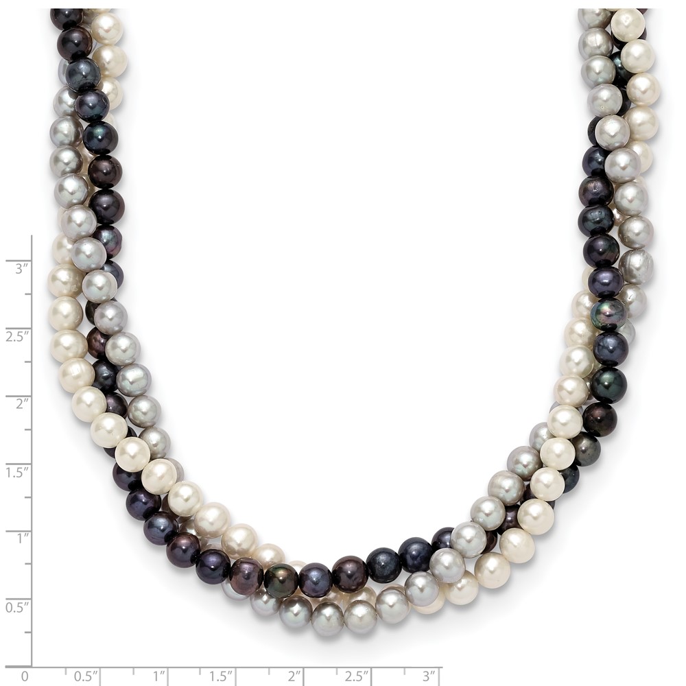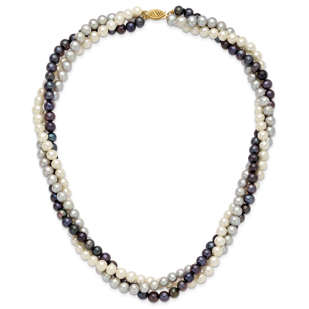 14k 6-7mm White/Gray/Black Near-Round Freshwater Cultured Pearl 3-Strand 18 inch Necklace