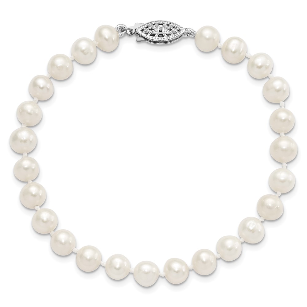 Sterling Silver Rhodium White Freshwater Cultured Pearl Bracelets