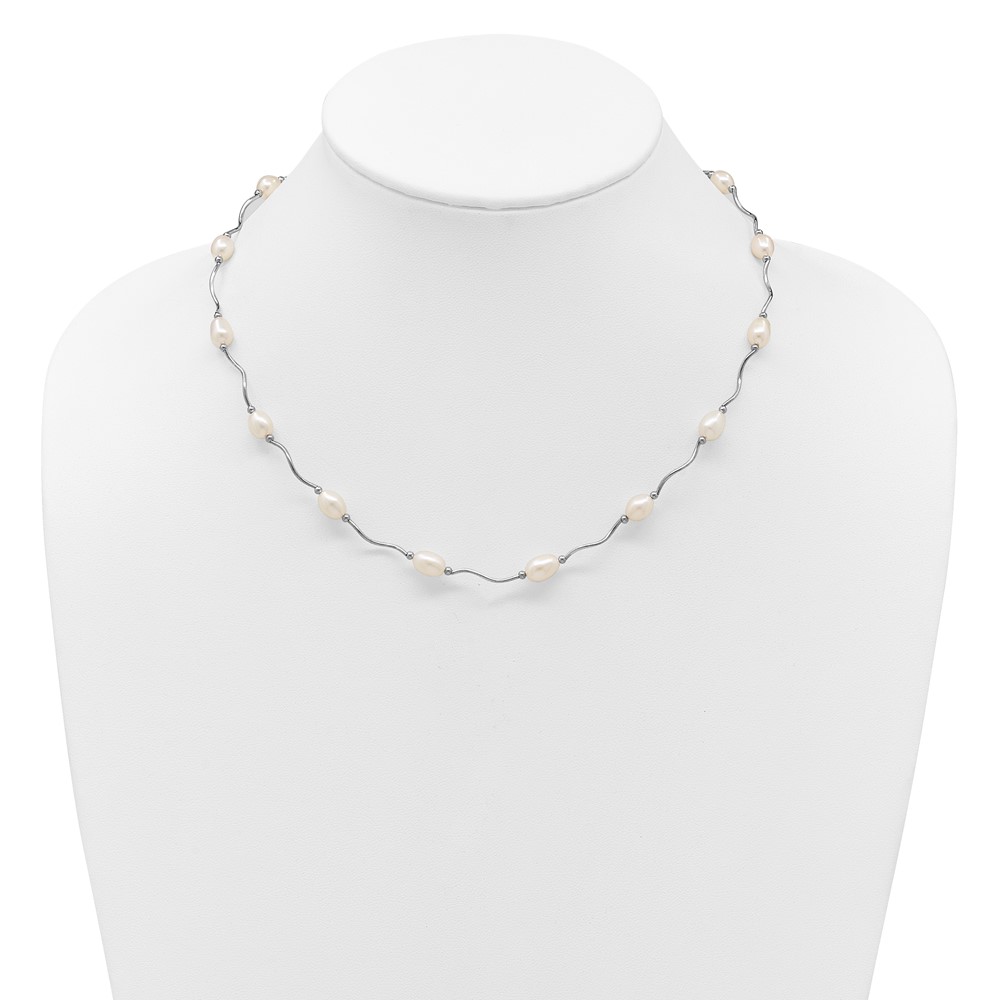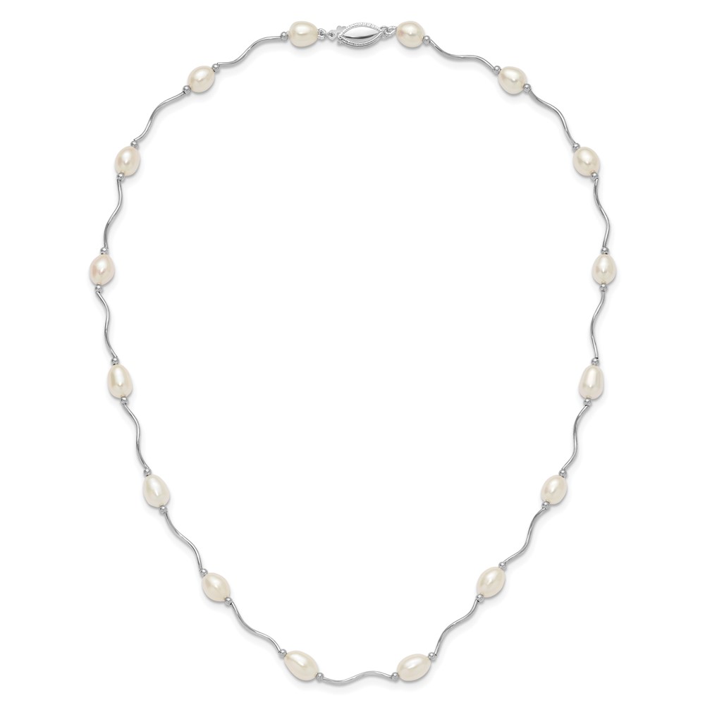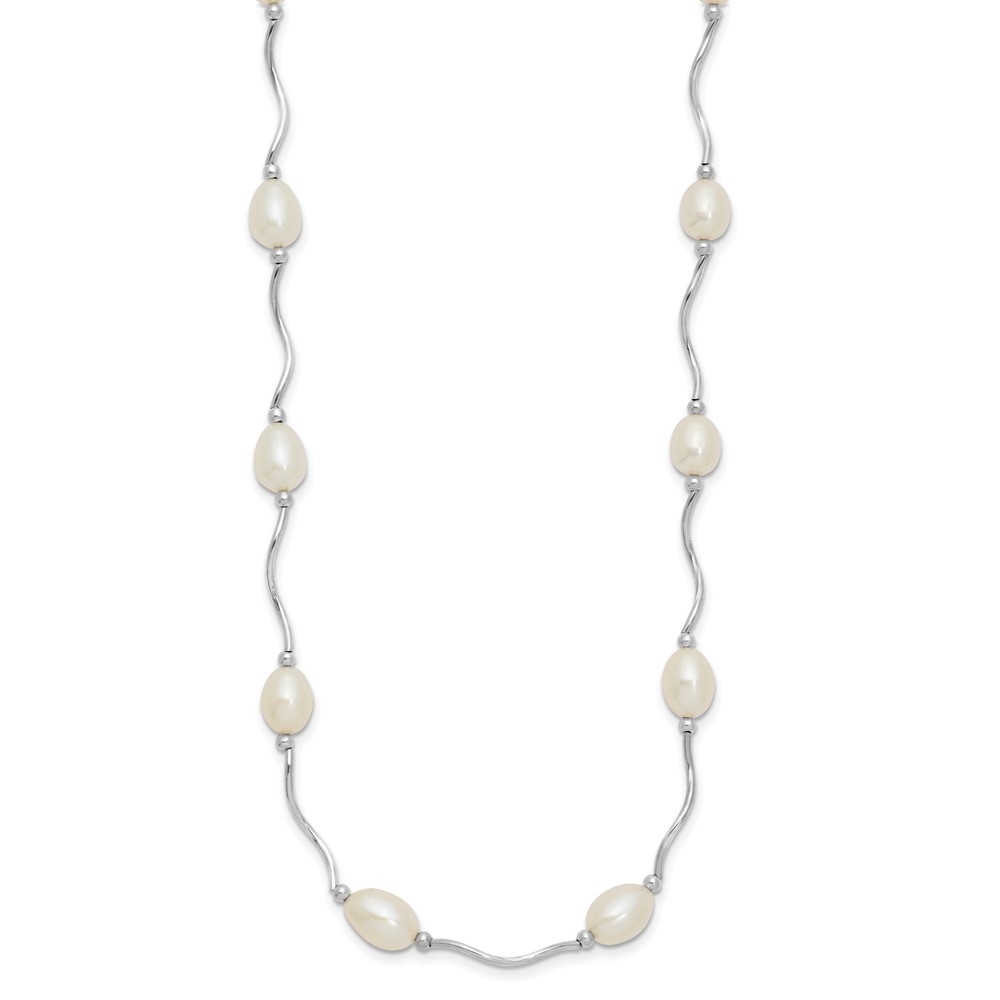 Sterling Silver Rhodium-plated 6-7mm White Rice Freshwater Cultured Pearl 16-Station 18 inch Necklace