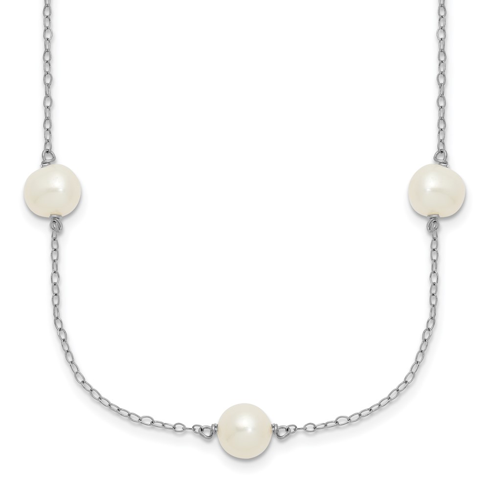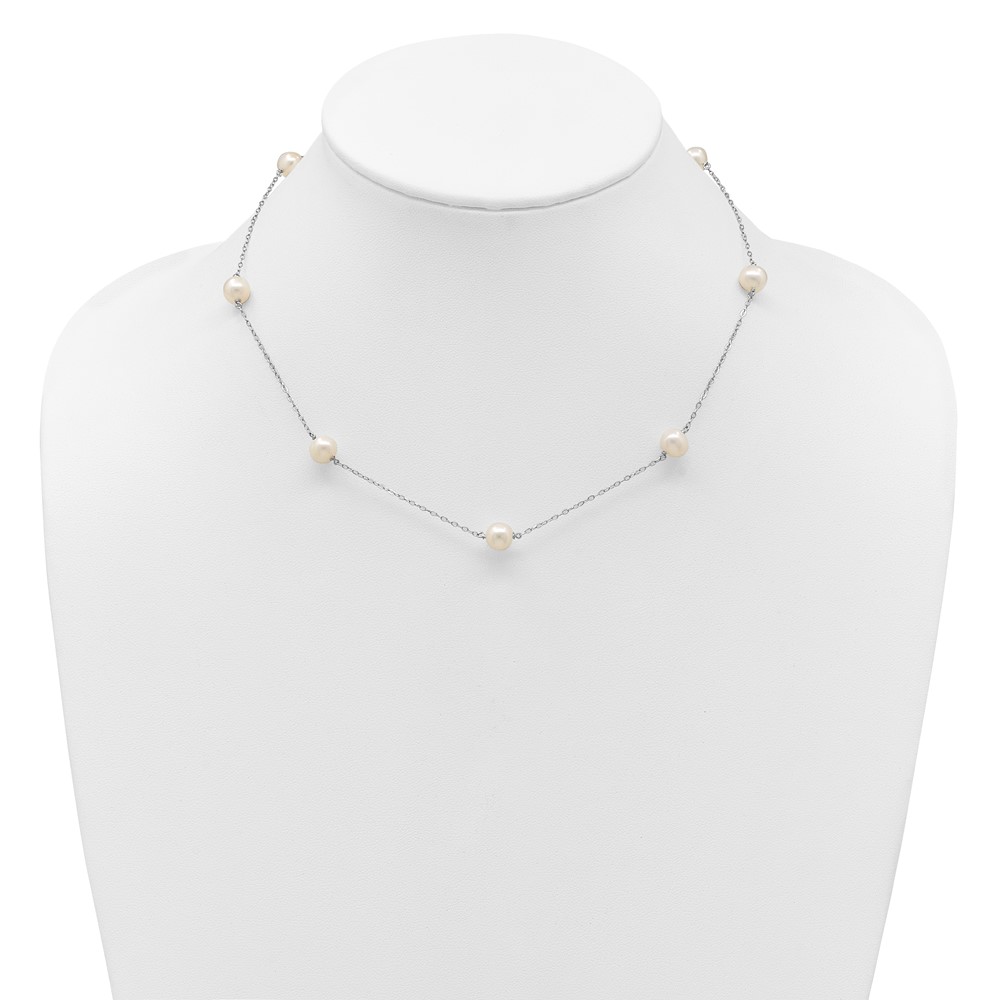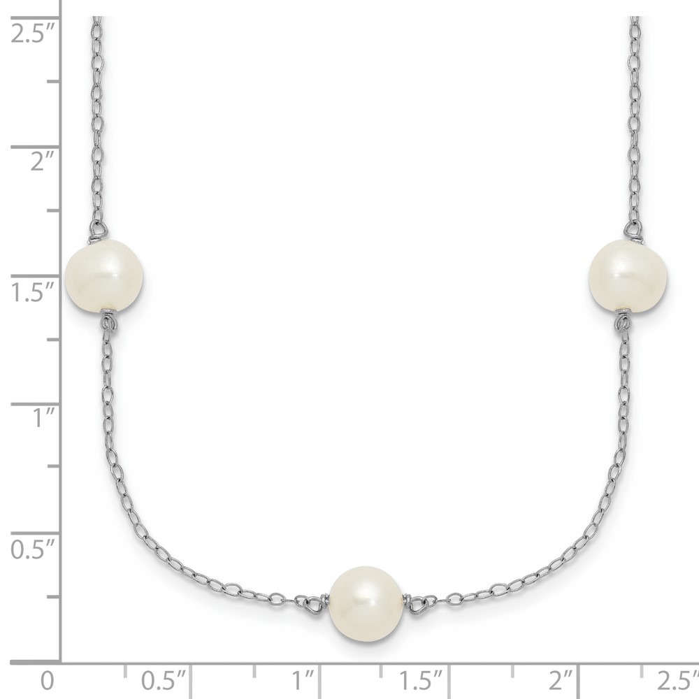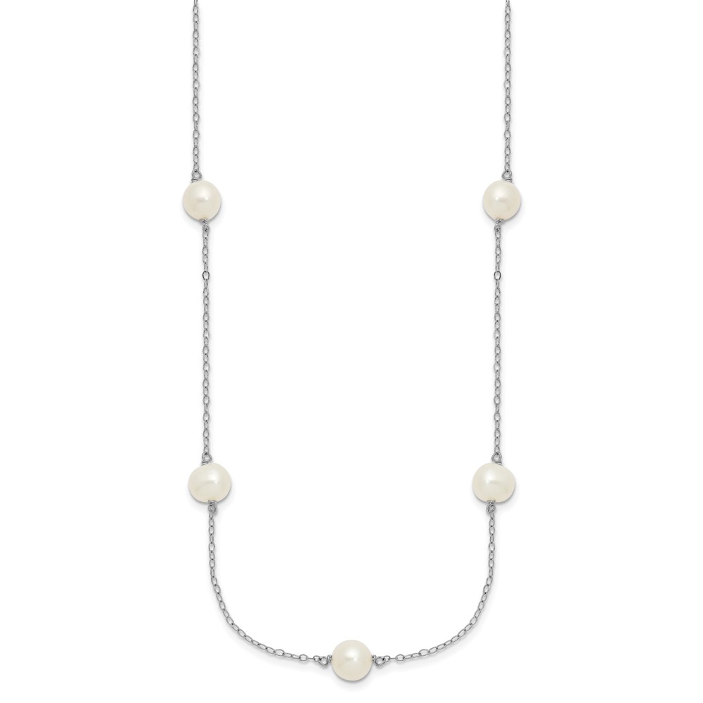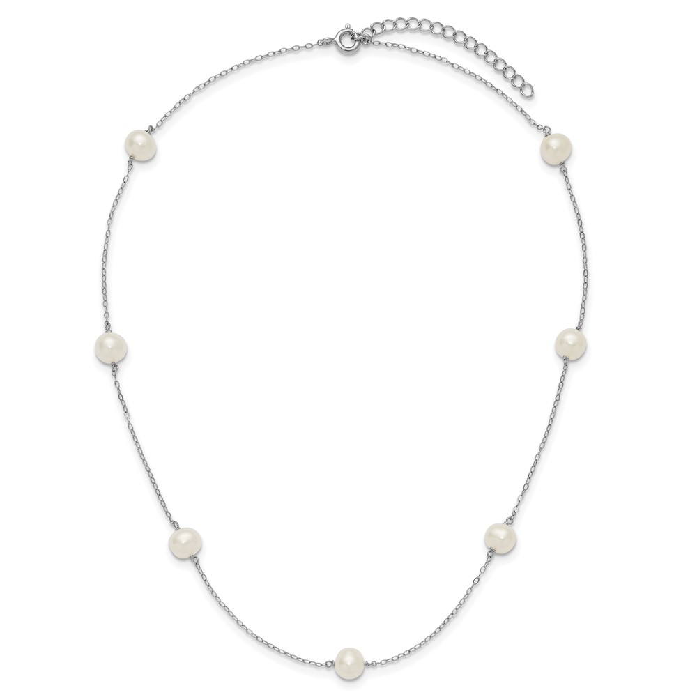 Sterling Silver Rhodium-plated 7-8mm White Near-Round Freshwater Cultured Pearl 7-Station 17 inch with 2 inch Extension Necklace