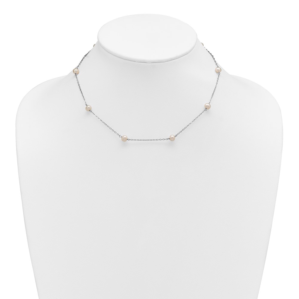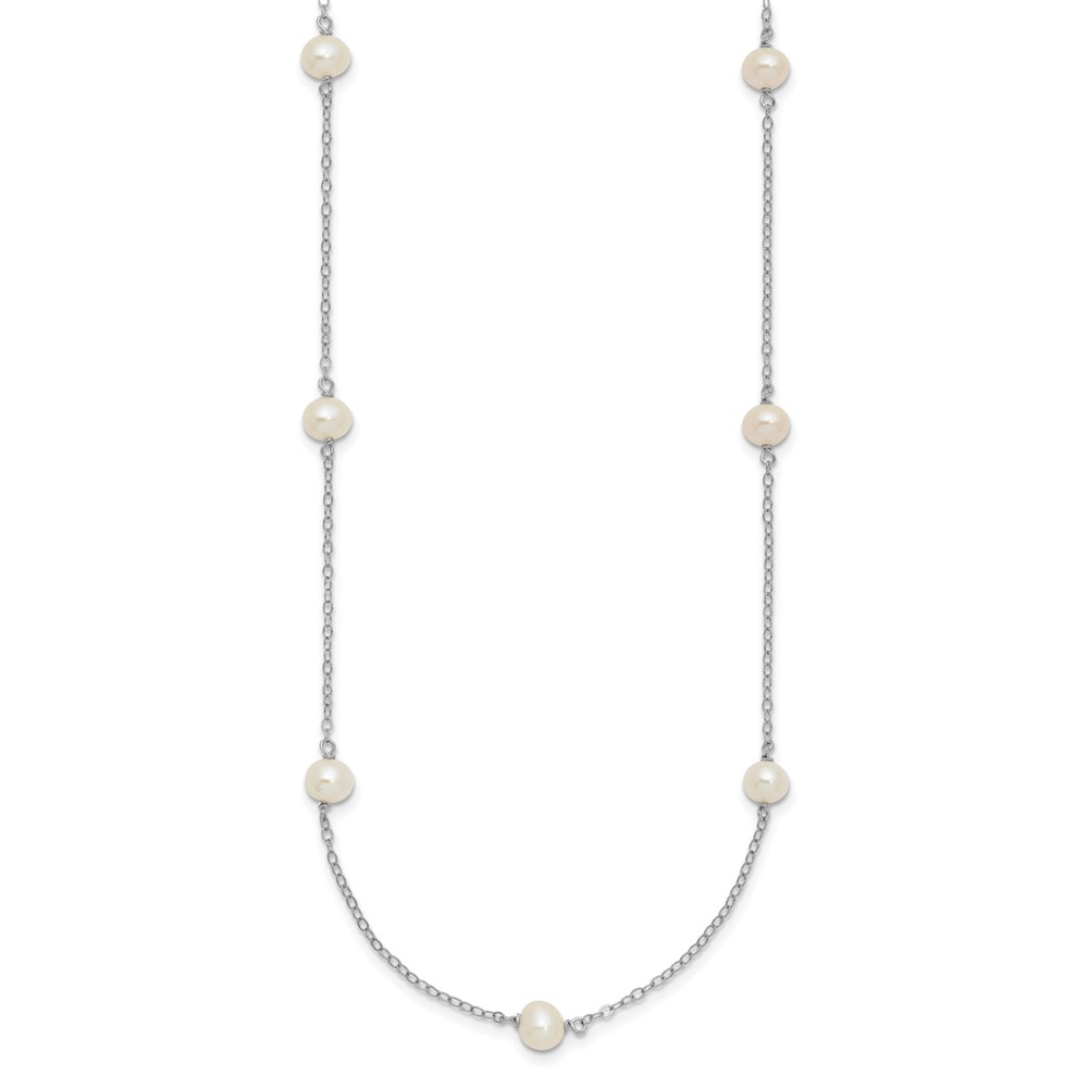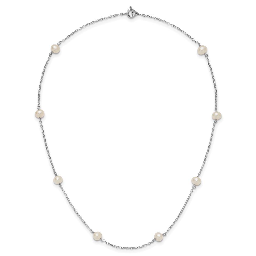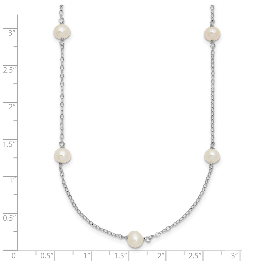Sterling Silver Rhodium-plated 5-6mm White Near-Round Freshwater Cultured Pearl 8-Station 16 inch Necklace