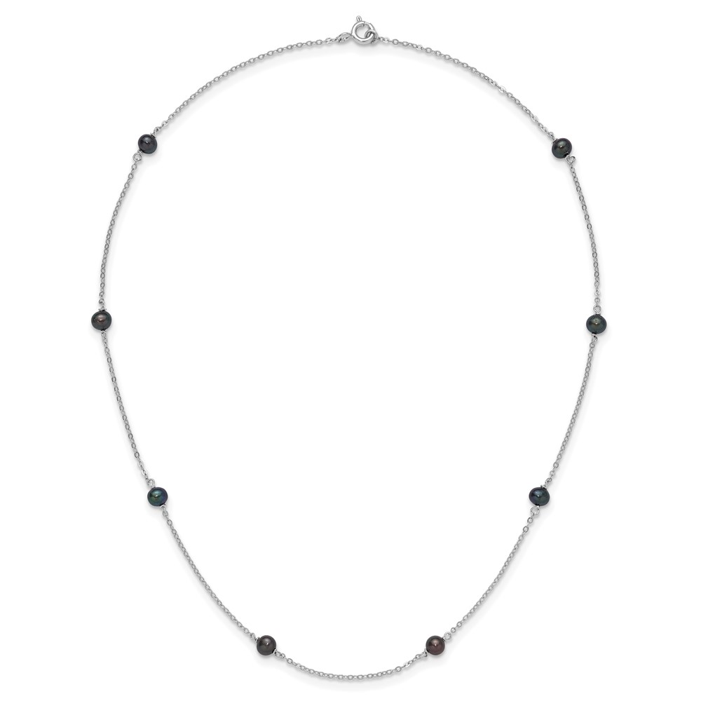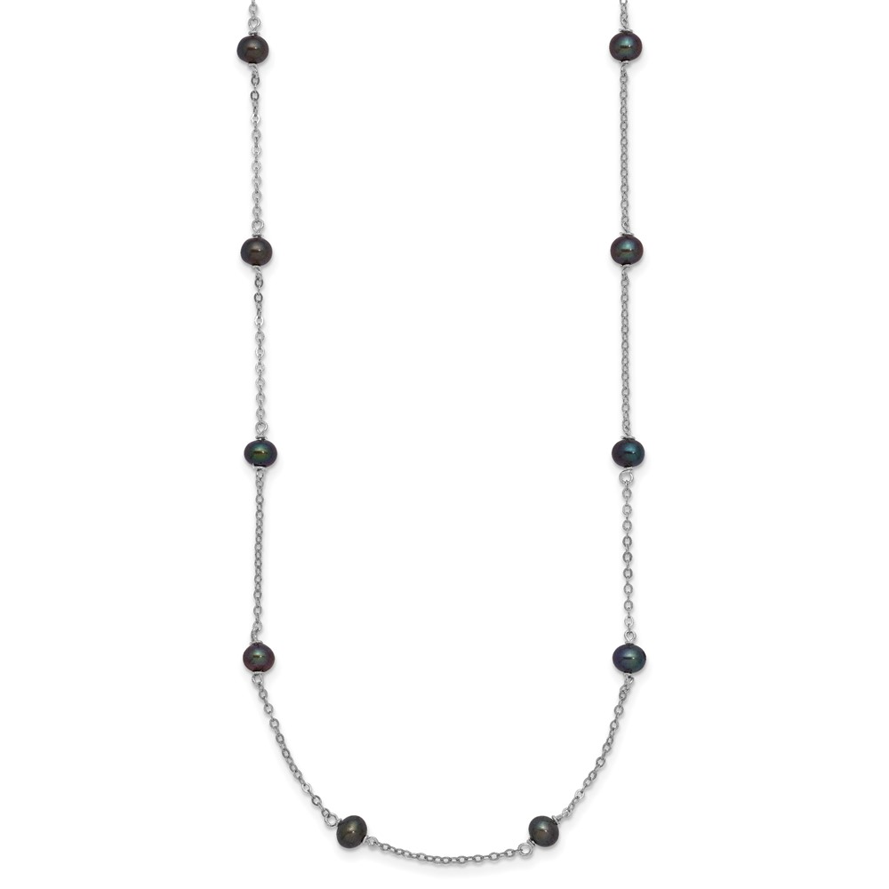 Sterling Silver Rhodium-plated 4-5mm Black Semi-Round Freshwater Cultured Pearl 8-Station 16 inch Necklace