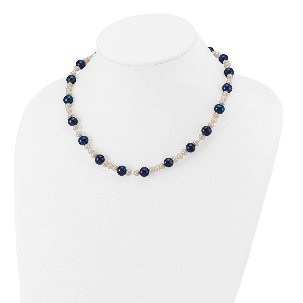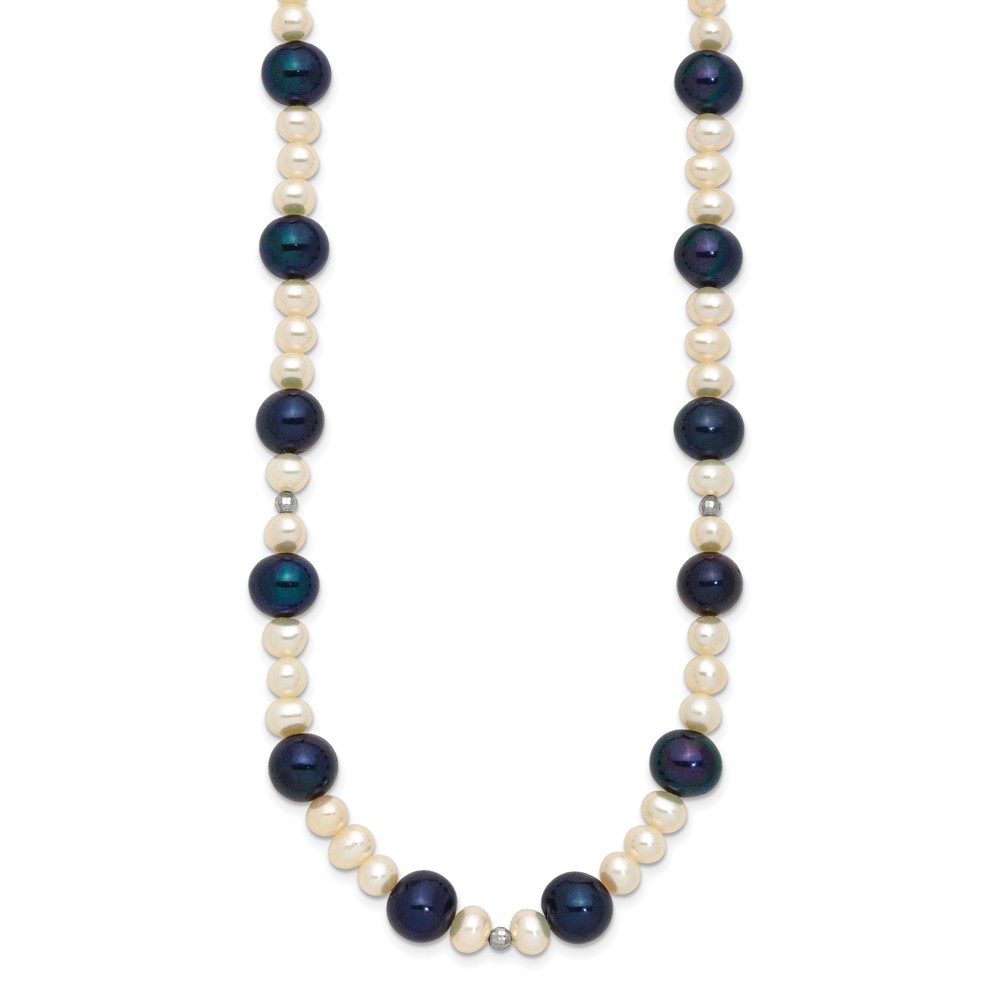 14k White Gold Black and White Semi-Round Freshwater Cultured and Mirror Bead 18 inch Necklace