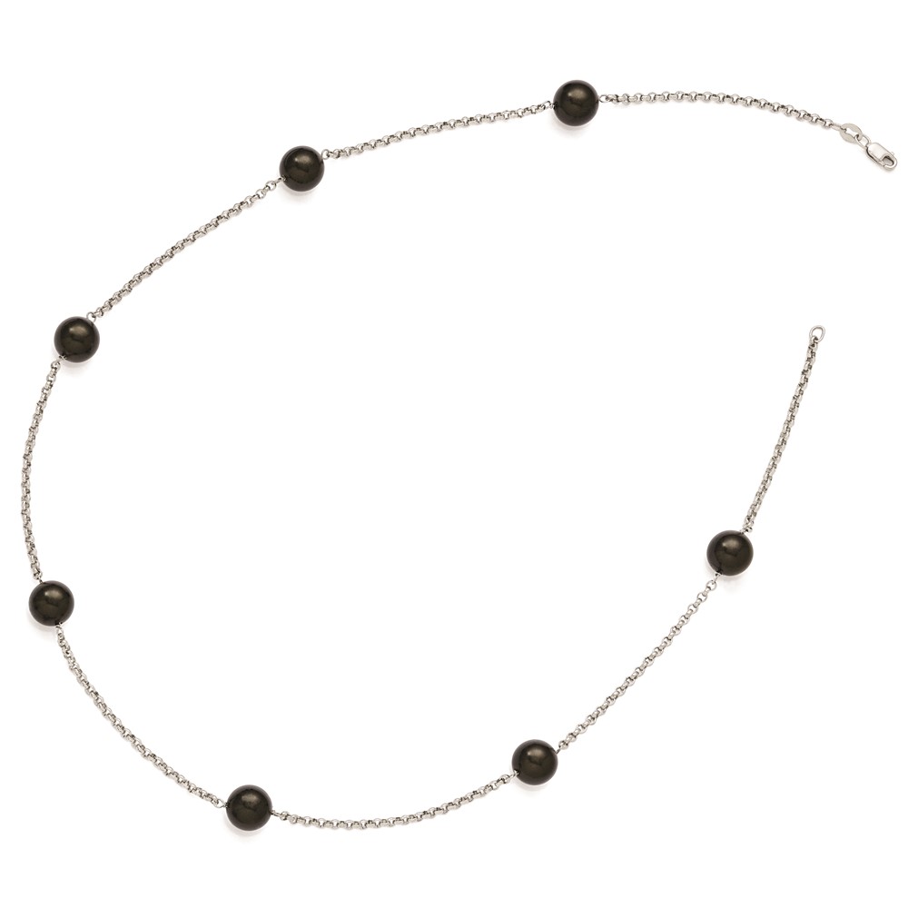 Sterling Silver Majestik 10-11mm Black Shell Bead 7 Station Necklace