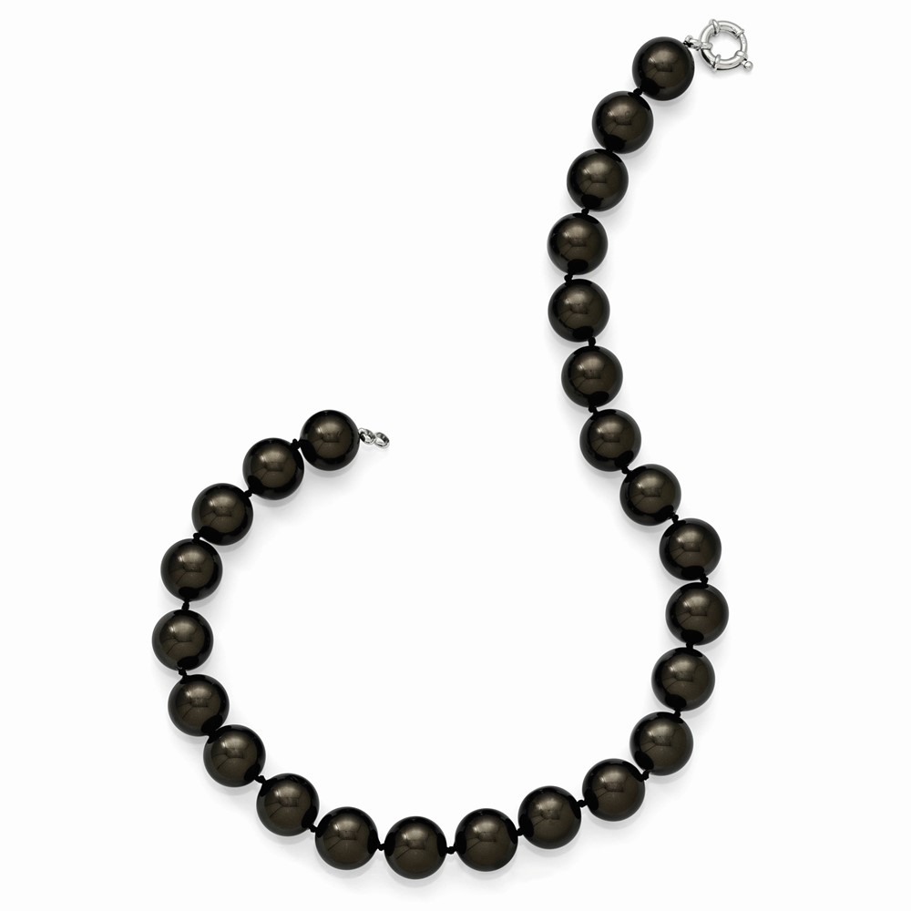 Sterling S Majestik Rh-pl 16-17mm Blk Imitat Shell Pearl Hand Knotted Neckl