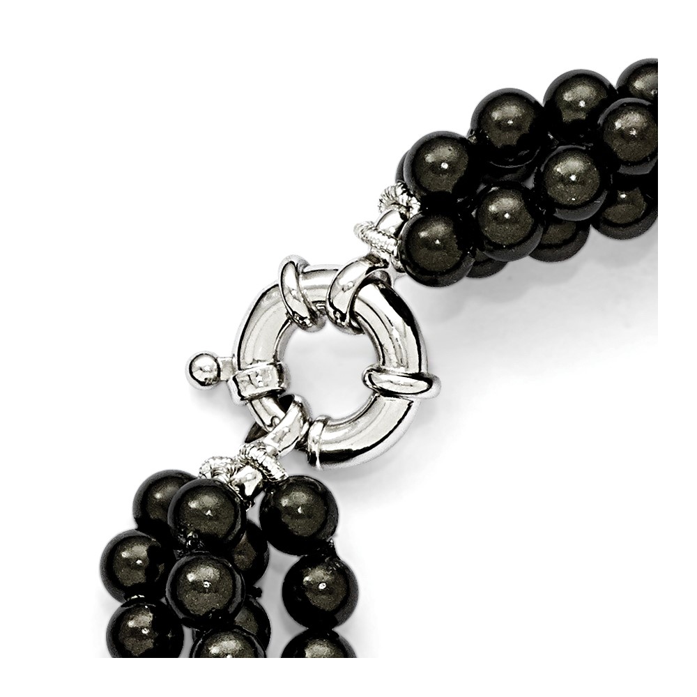 Sterling S Majestik Rh-pl 4 Row 4-5mm Blk Imitat Shell Pearl Twisted Neck