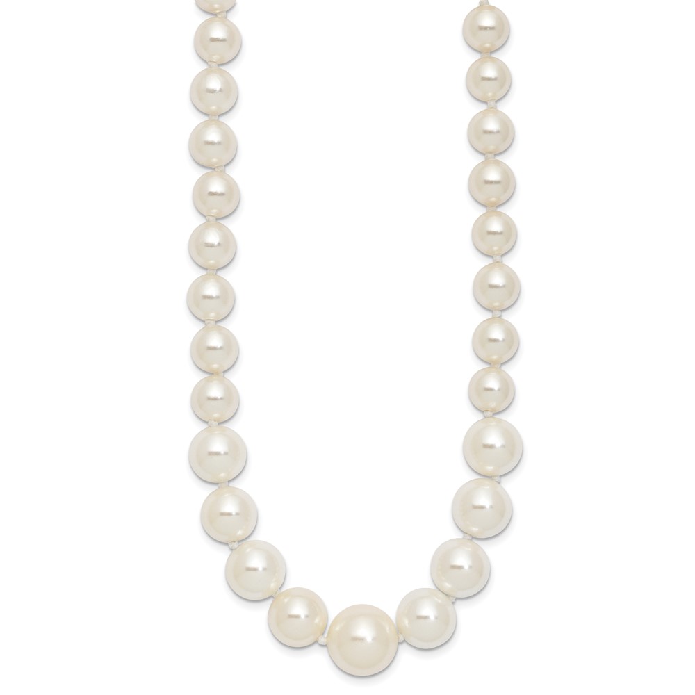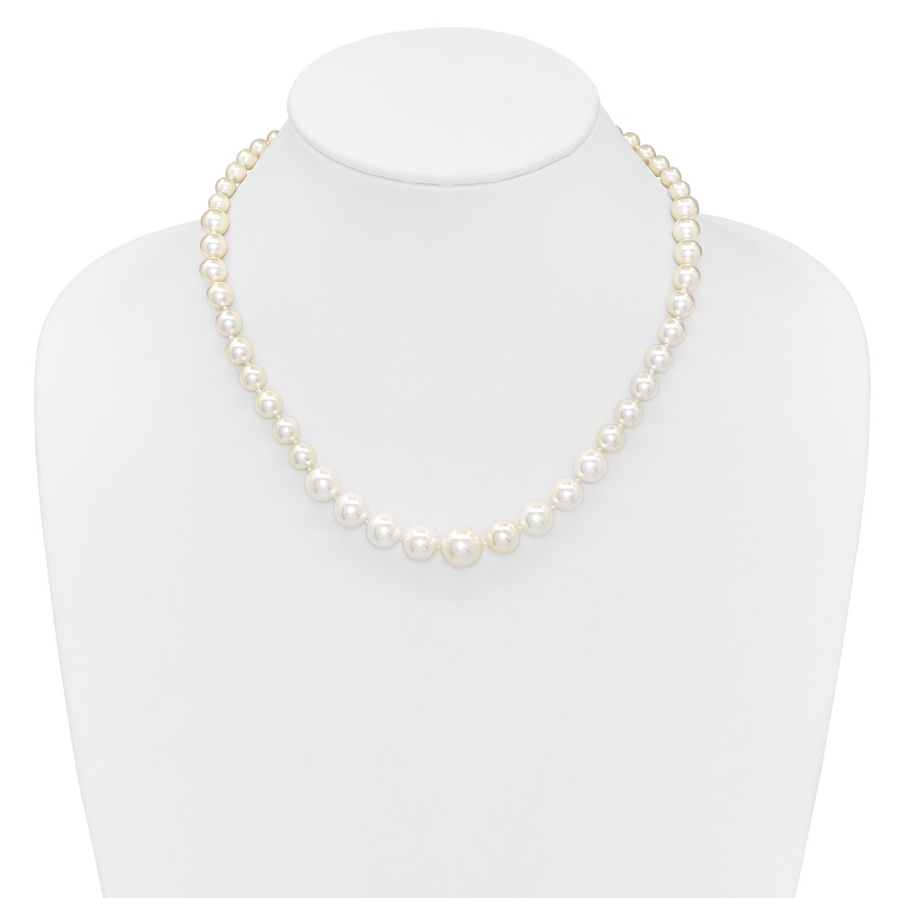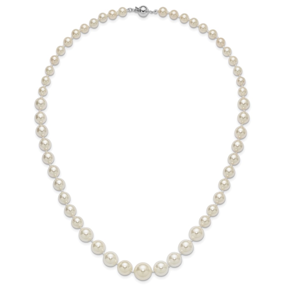 Majestik Sterling Silver Rhodium-plated 6-12mm Graduated White Imitation Shell Pearl Hand-knotted Necklace