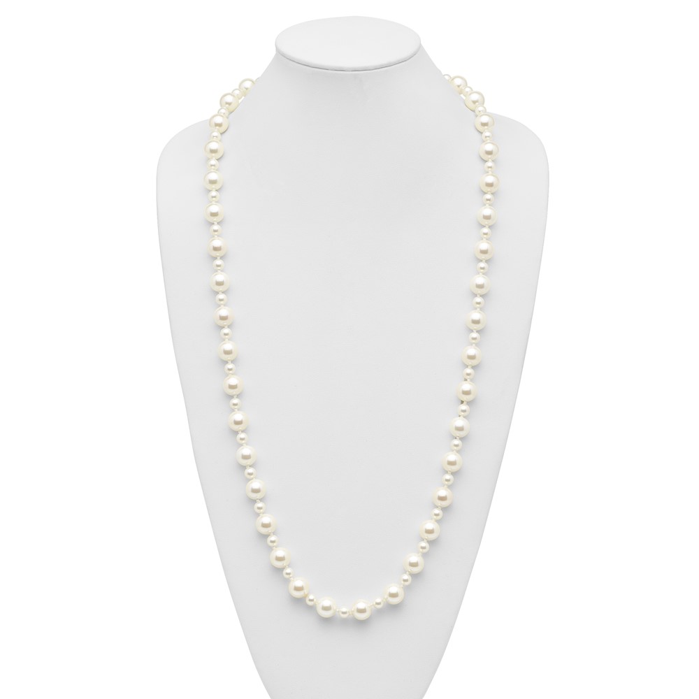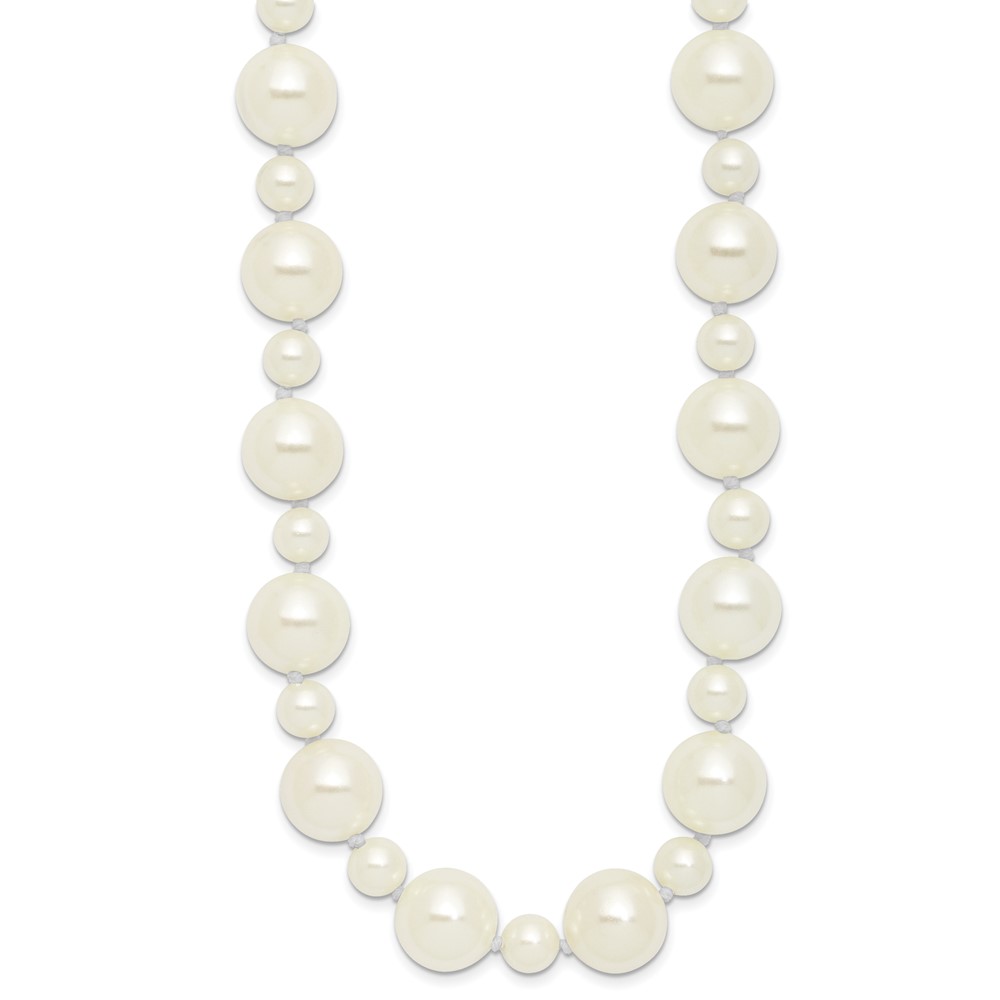 Majestik 7 and 12mm White Imitation Shell Pearl Hand-knotted Slip-on Necklace