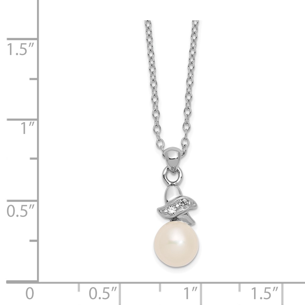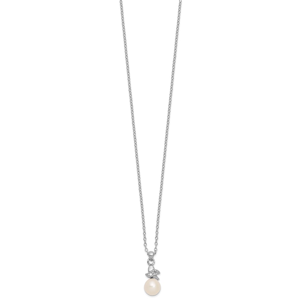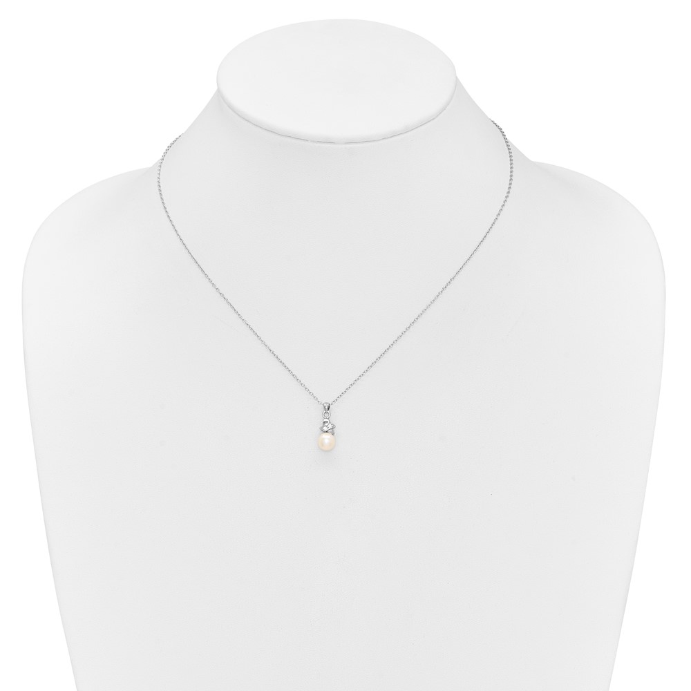 Sterling Silver Rhodium-plated 6-7mm White Button Freshwater Cultured Pearl and CZ 17 inch Necklace