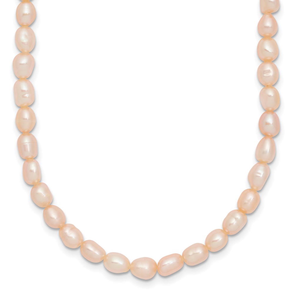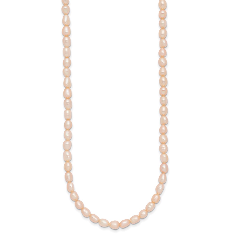 Sterling Silver Rhodium-plate 4-5mm Pink Rice Freshwater Cultured Pearl Children's 13 inch Necklace