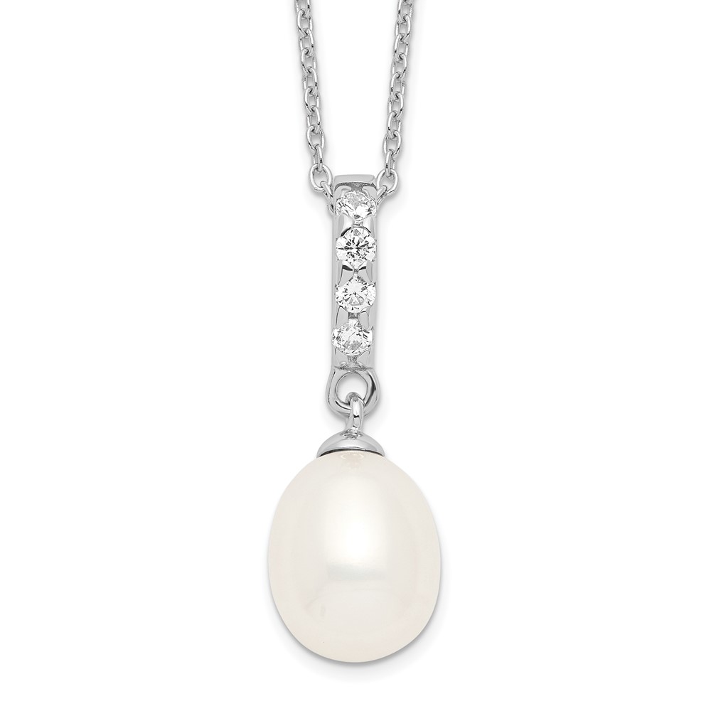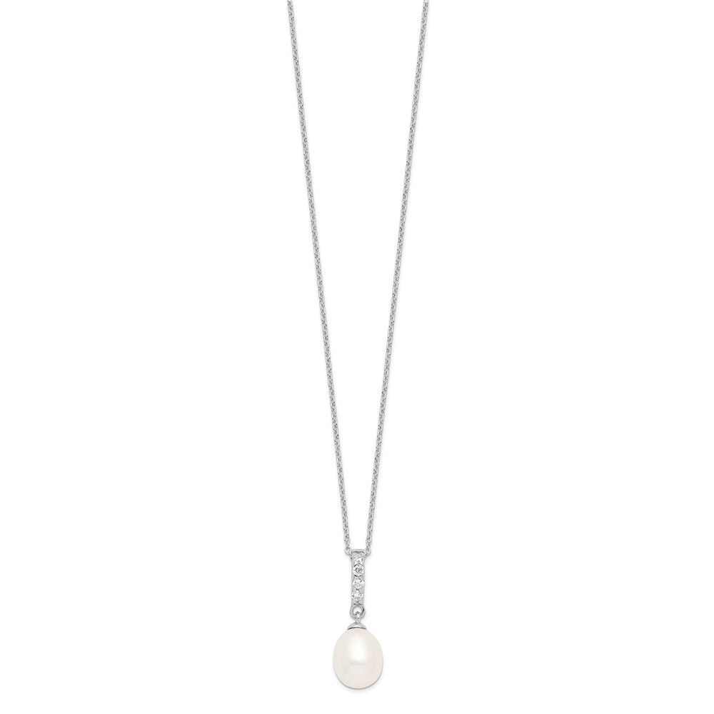 Sterling Silver Rhodium-plated 8-9mm White Teardrop Freshwater Cultured Pearl and CZ 17 inch Necklace