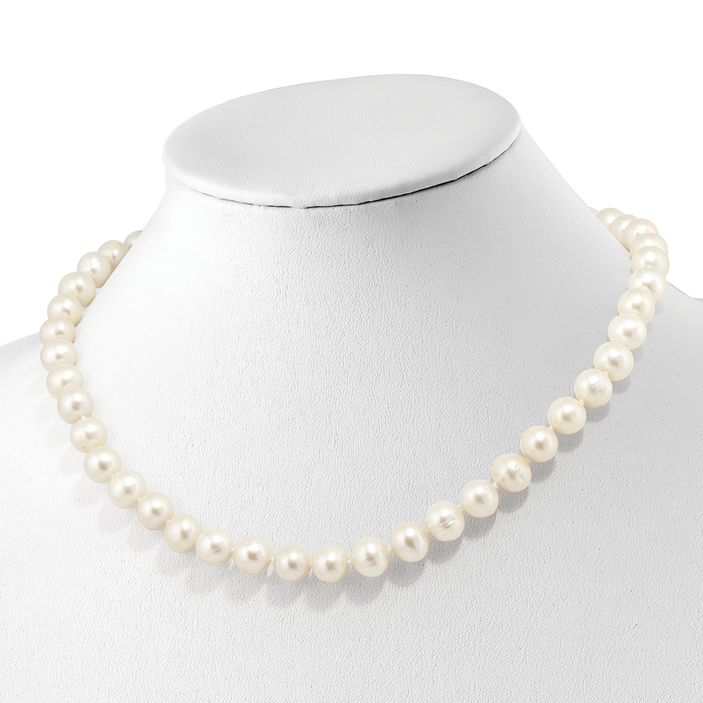 Sterling Silver Rhodium-plated 9-10mm White Near-Round Freshwater Cultured Pearl and CZ Clasp Adjustable 18 inch Necklace