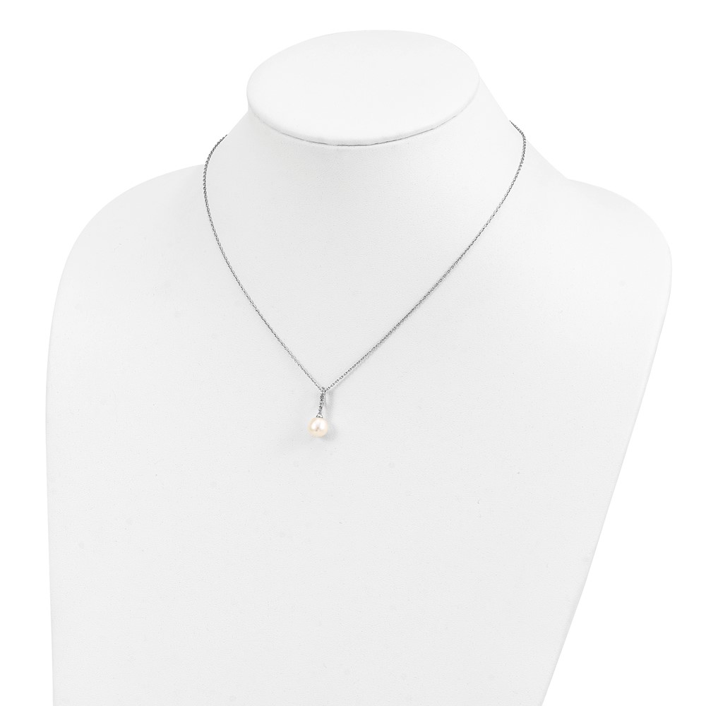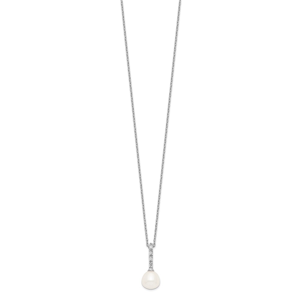 Sterling Silver Rhodium-plated 7-8mm White Teardrop Freshwater Cultured Pearl and CZ 17 inch Necklace