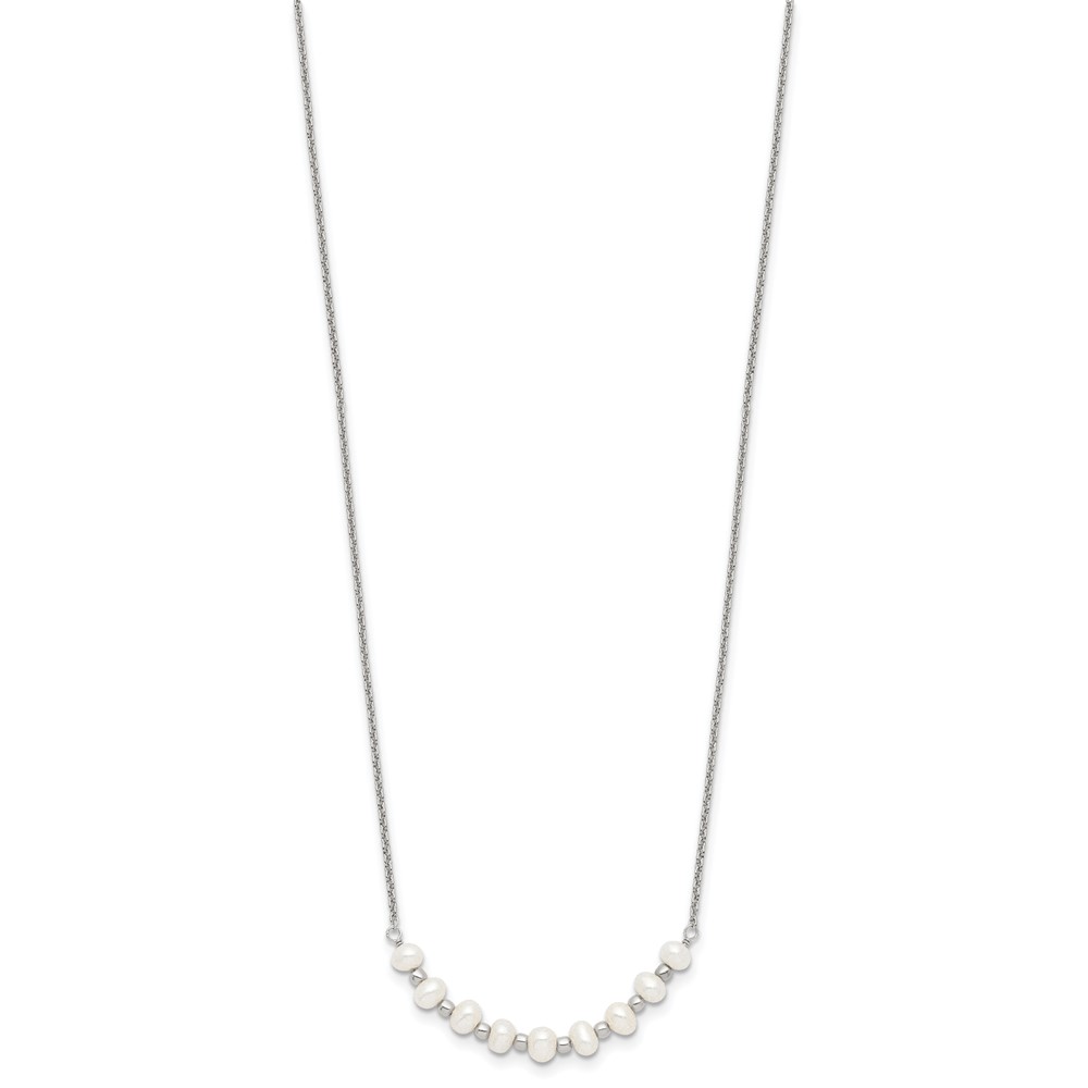 Sterling Silver Polished & Beaded 3-4mm Semi-round Freshwater Cultured Pearl Curved Children's Necklace