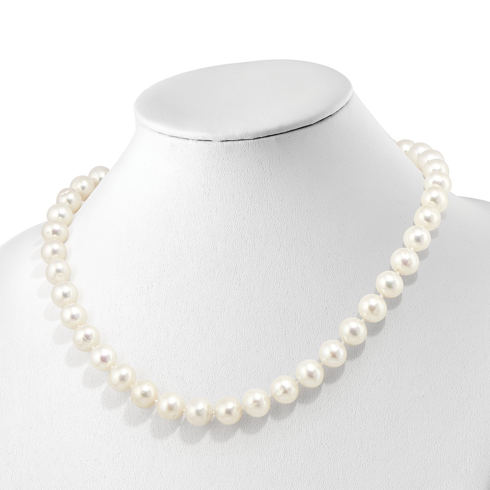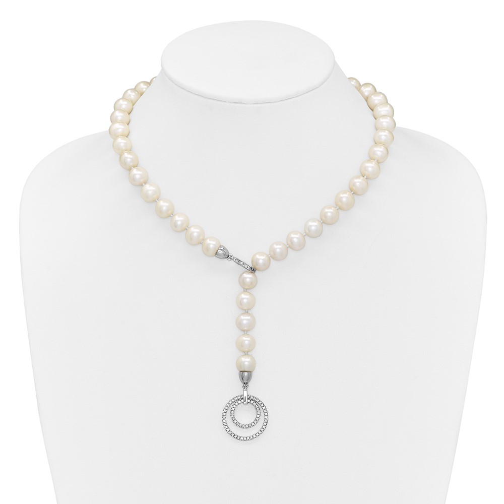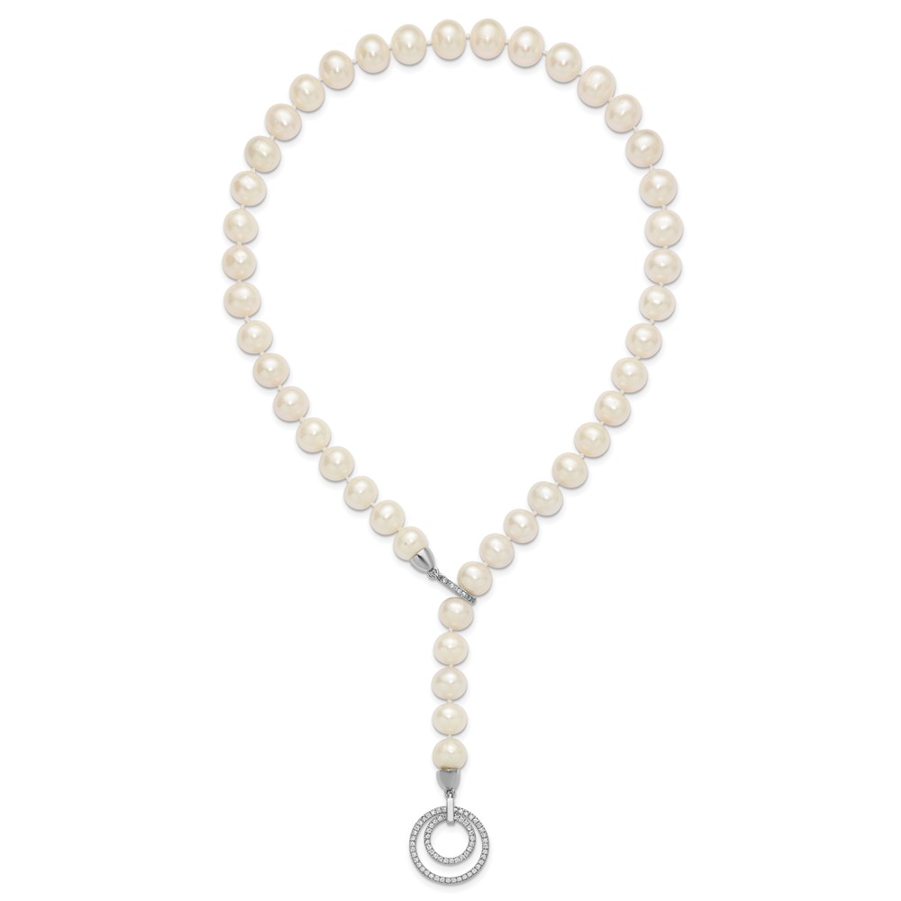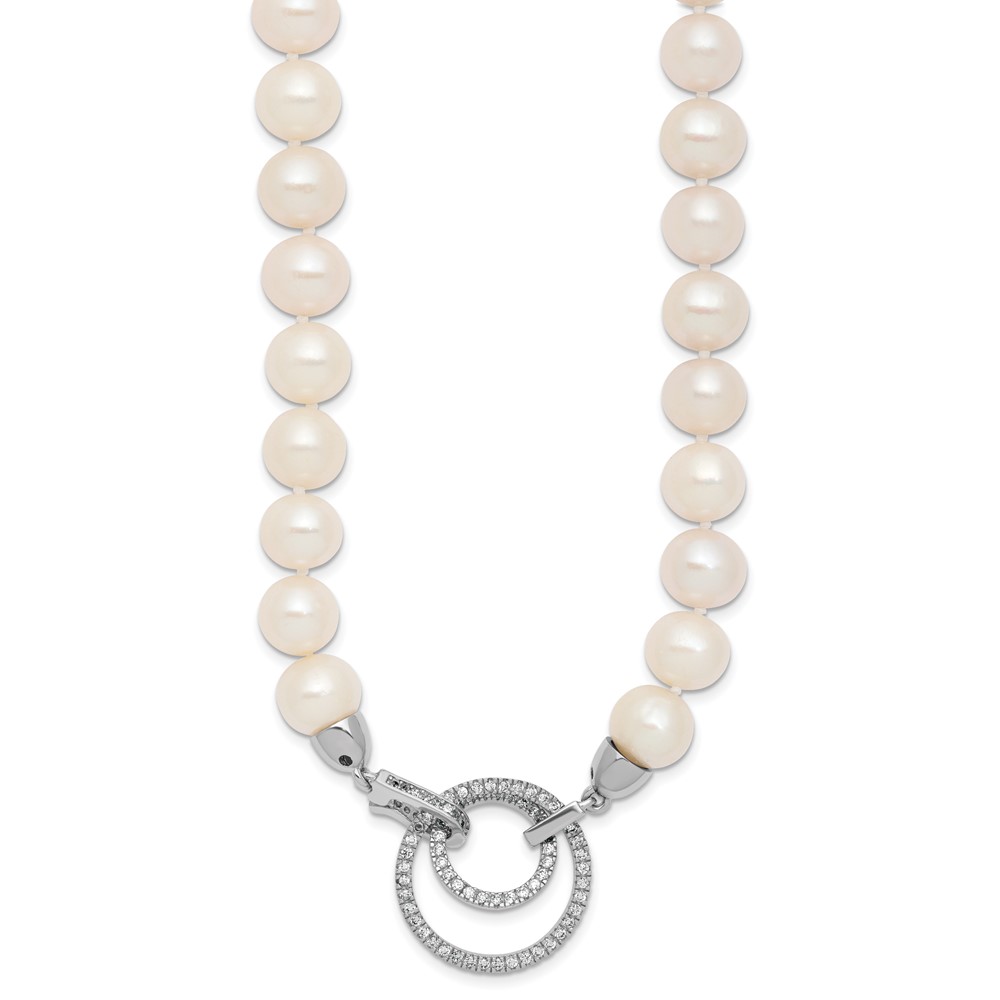Sterling Silver Rhodium-plated 10-11mm White Near-Round Freshwater Cultured Pearl and CZ Clasp Adjustable 19.5 inch Necklace