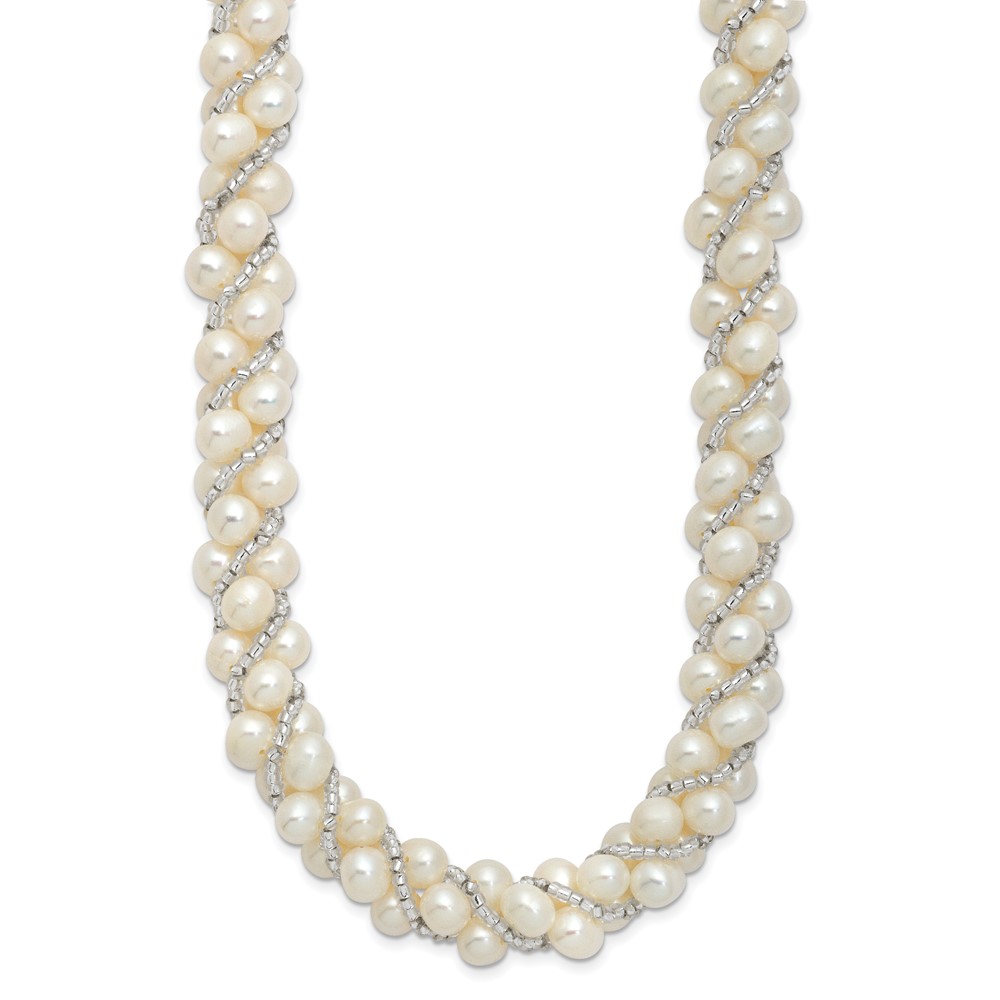 Sterling Silver Rhodium-plated 6-7mm White Near-Round Pearl and Glass Beaded Twisted 18 inch Necklace