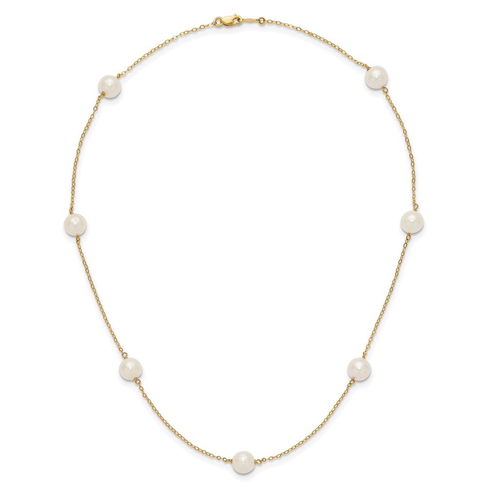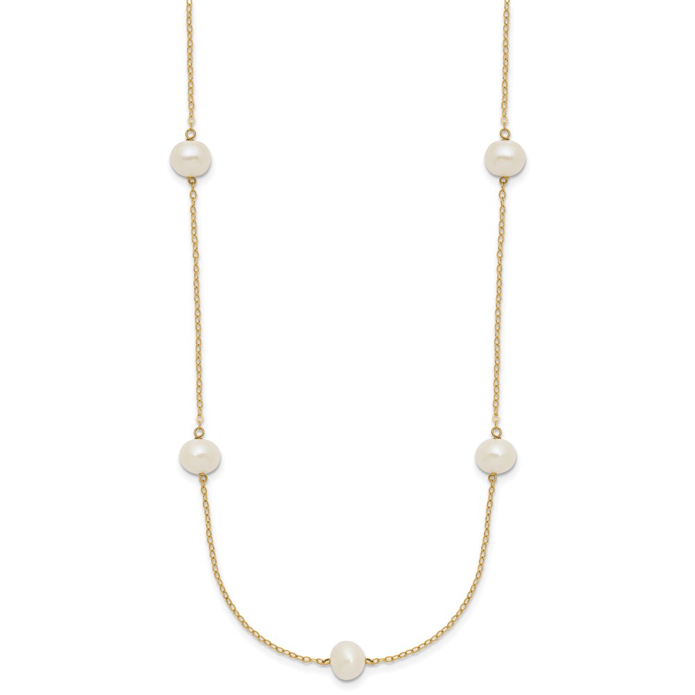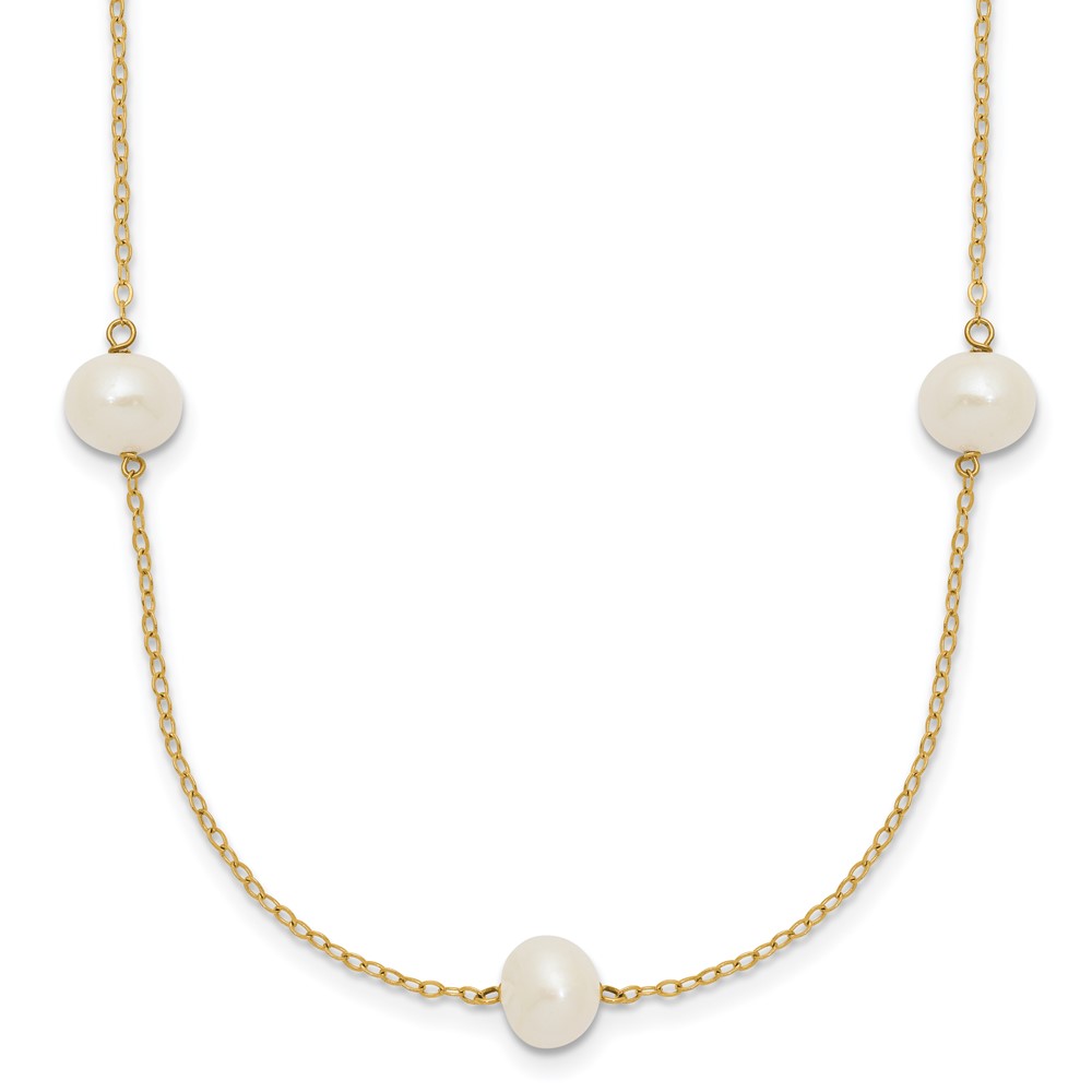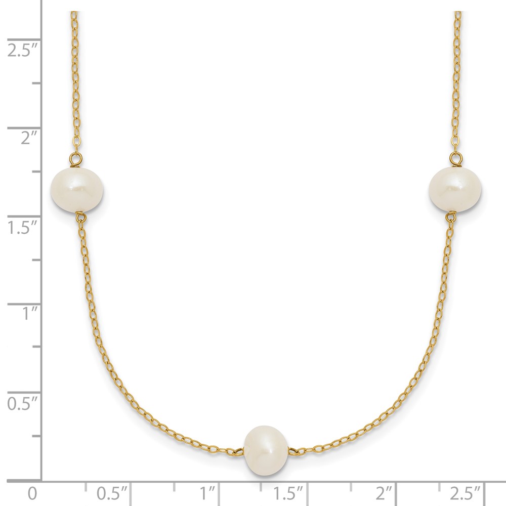 14k 7-8mm White Near-Round Freshwater Cultured Pearl 7-Station 16 inch Necklace