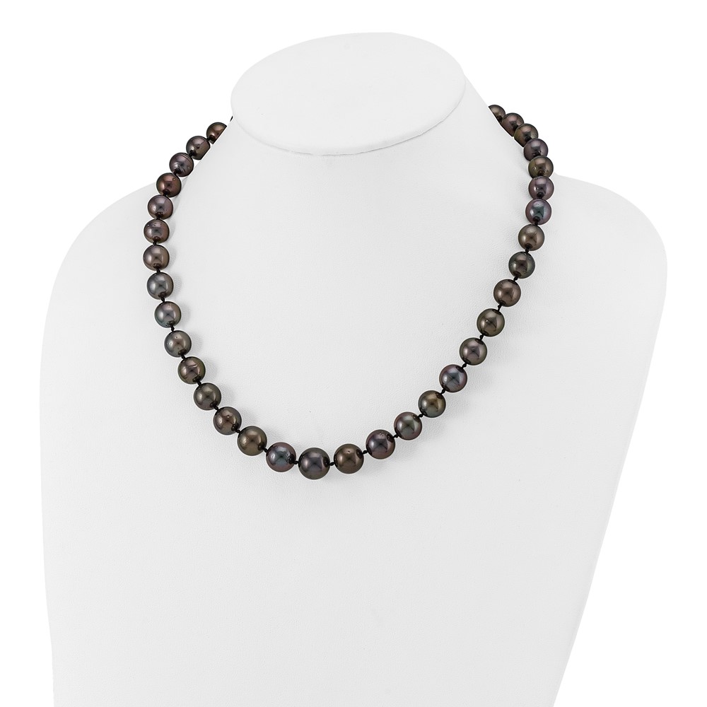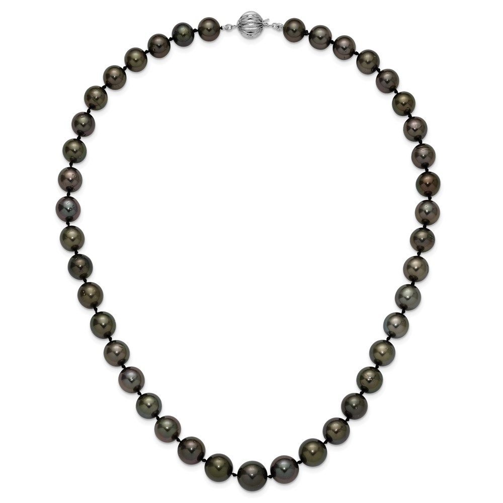 14k White Gold 9-12mm Black Semi-Round Tahitian Saltwater Cultured Pearl Graduated 19 inch Necklace