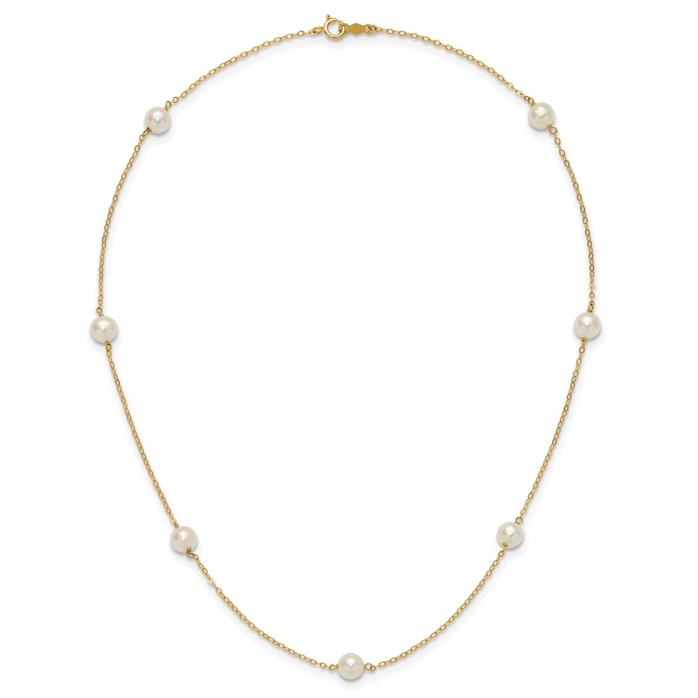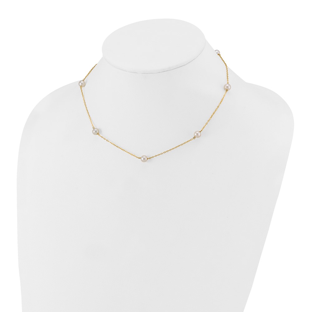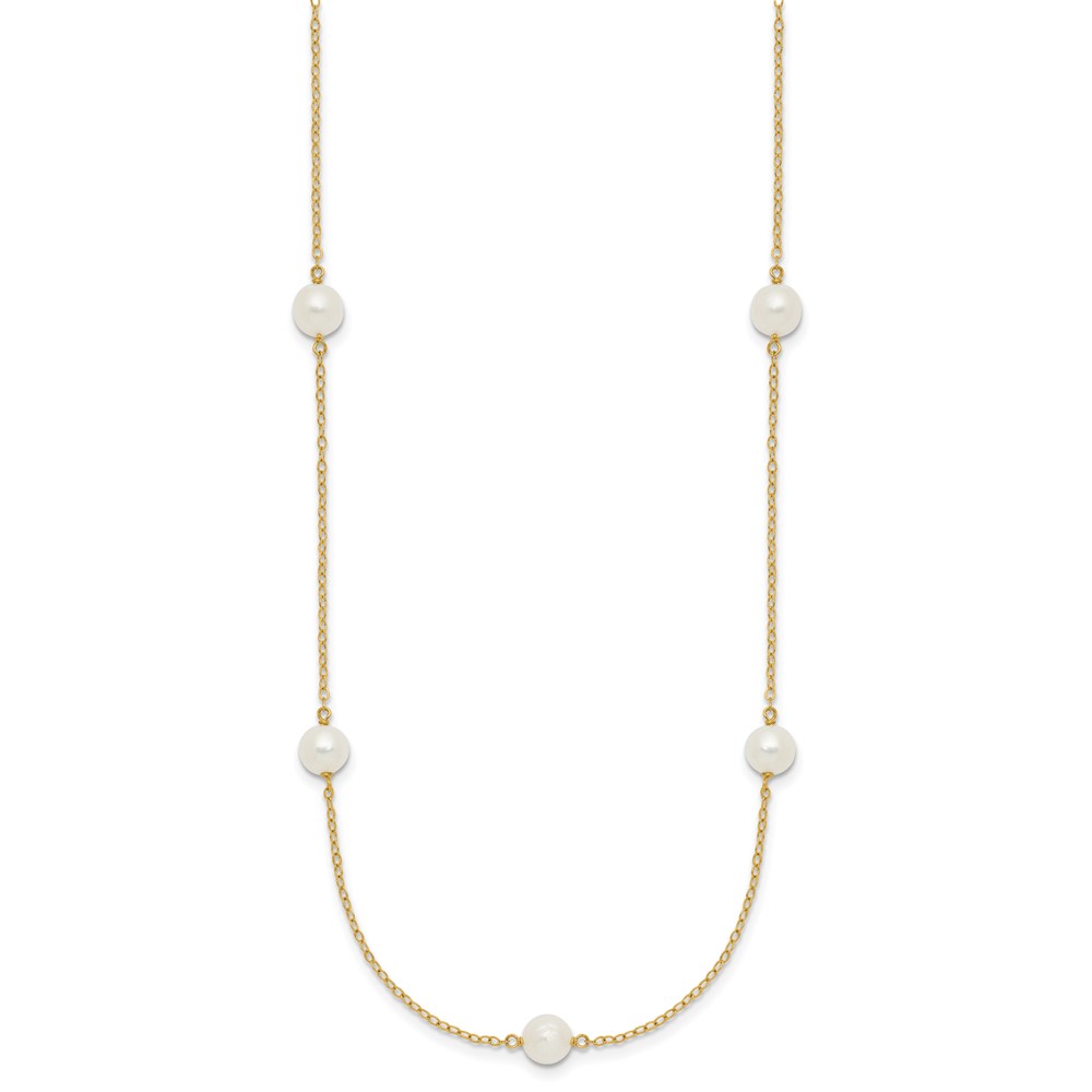 Gold Freshwater Cultured White Near Round Pearl Necklace