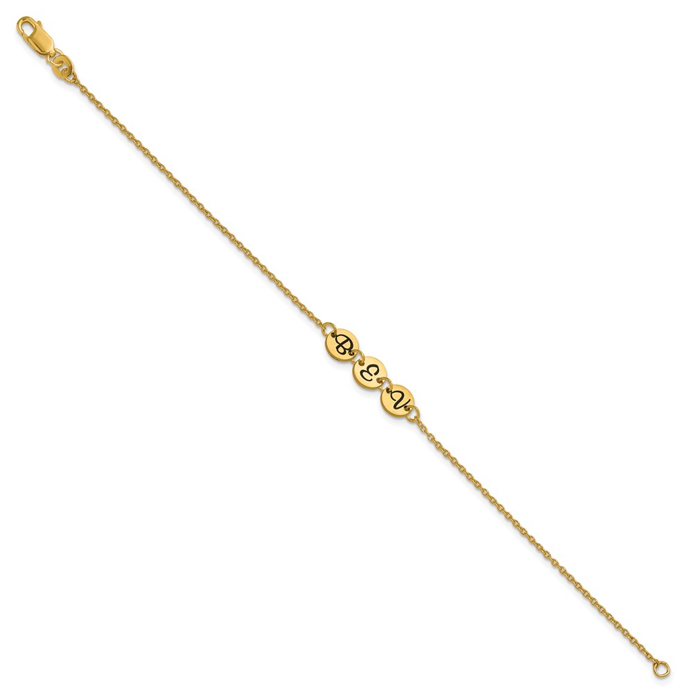10k Yellow Gold Brushed 3 Station Disc with Epoxy Initial Bracelet