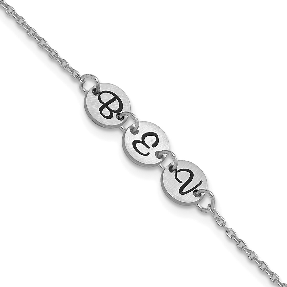 10k White Gold Brushed 3 Station Disc with Epoxy Initial Bracelet