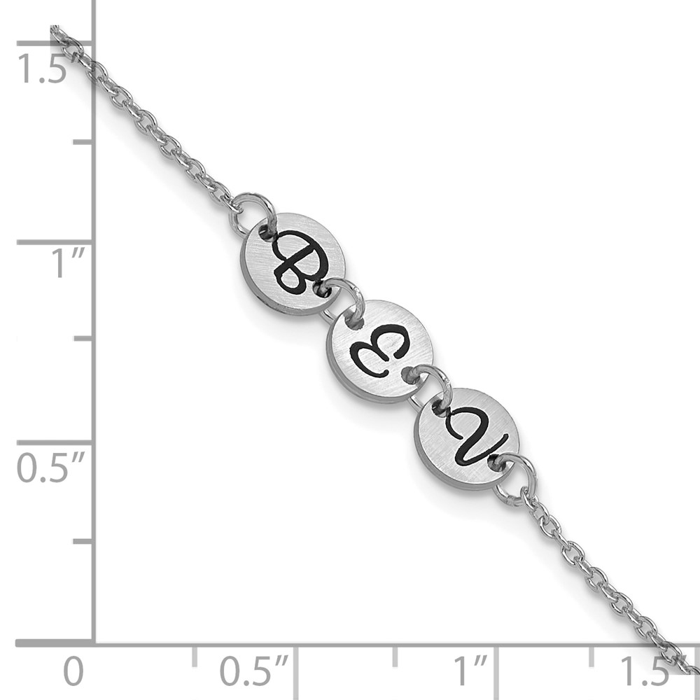 SS/Rhodium-plated Brushed 3 Station Disc with Epoxy Initial Bracelet