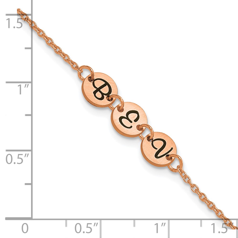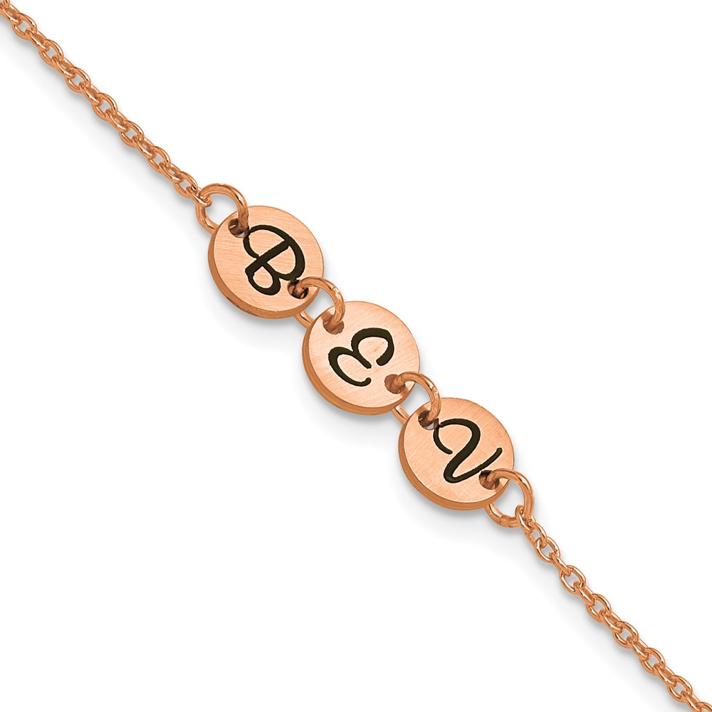 SS/Rose-plated Brushed 3 Station Disc with Epoxy Initial Bracelet