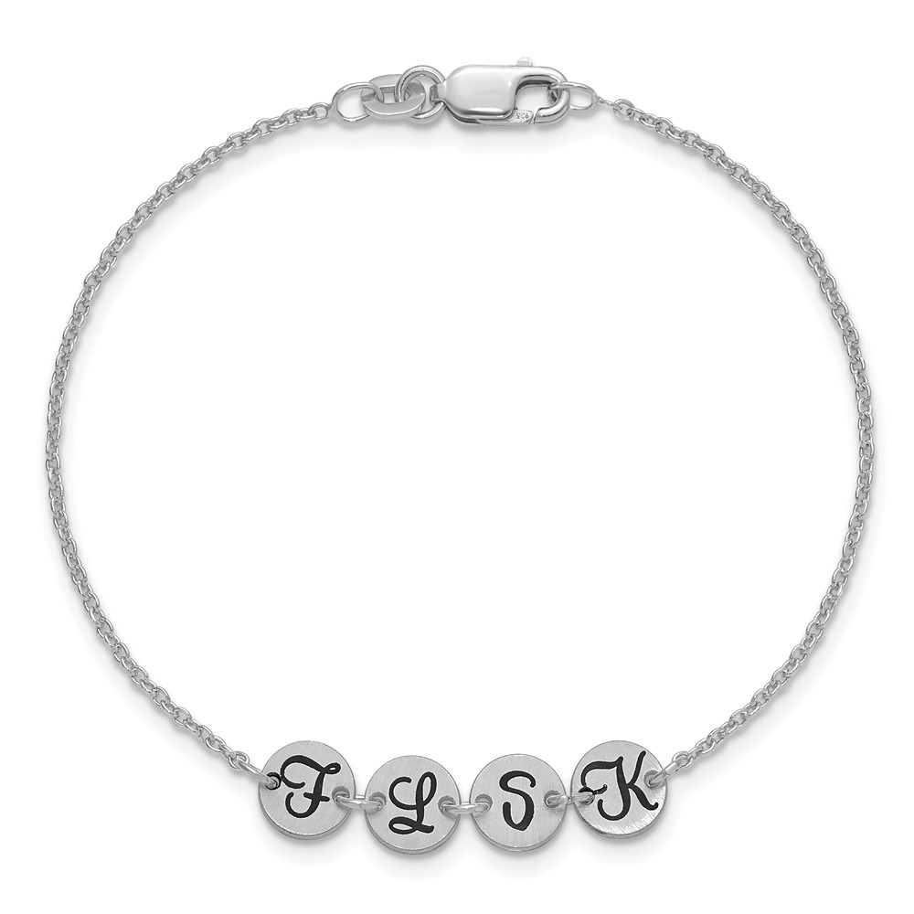 14k White Gold Brushed 4 Station Disc with Epoxy Initial Bracelet