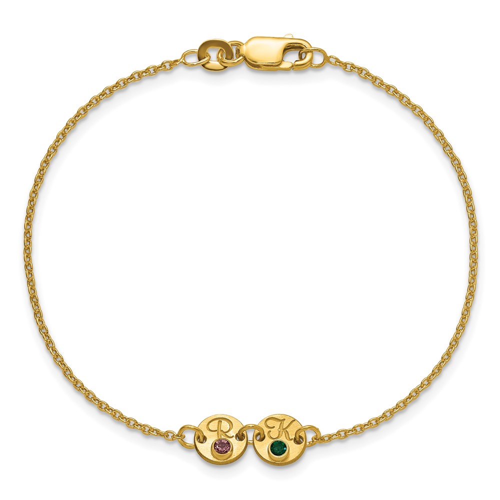 SS/Gold-plated 2 Disc with Initial and Birthstone Bracelet