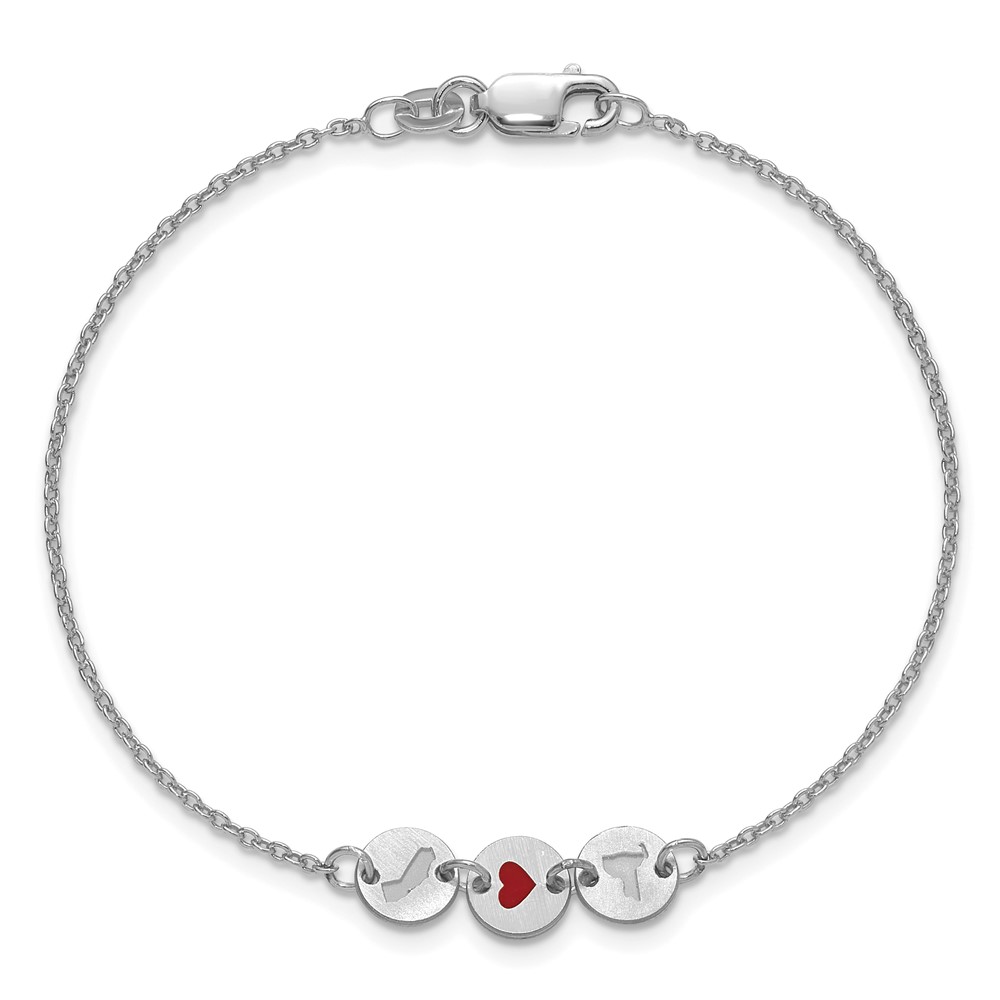 Sterling Silver/Rhodium-plated State Heart State Disc Bracelet