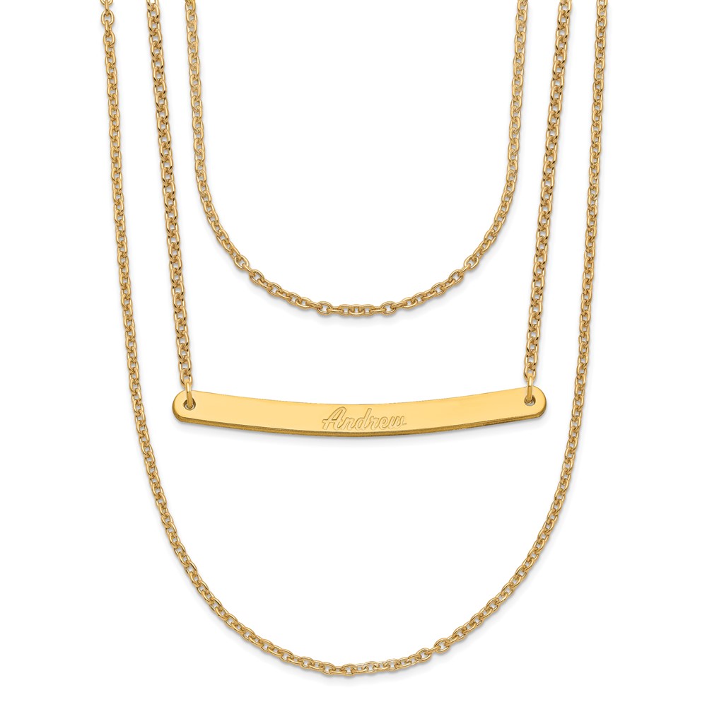 Brushed 3 Chain Bar Name Necklace