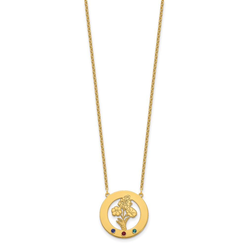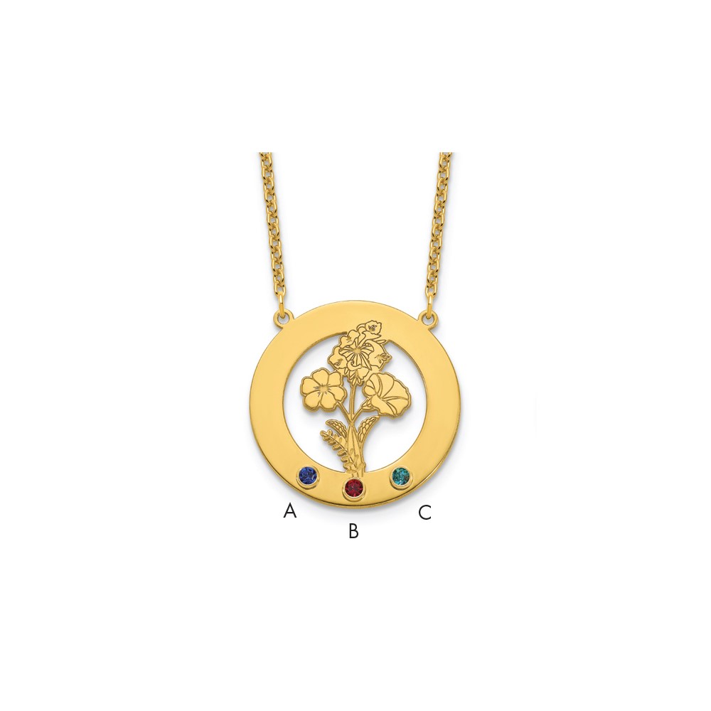 SS/Gold-Plated Circle w/3 Birth Flower and Birthstone Necklace