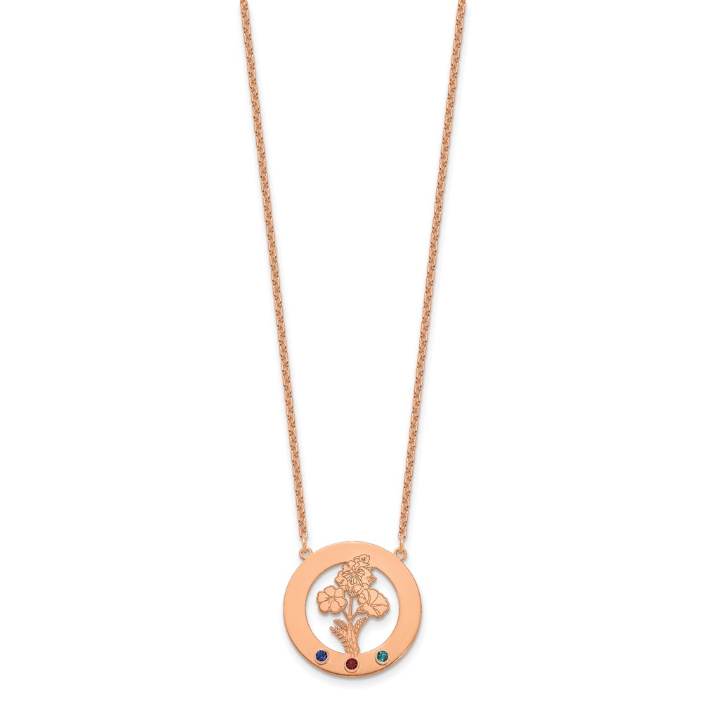 SS/Rose-plated Circle w/3 Birth Flower and Birthstone Necklace