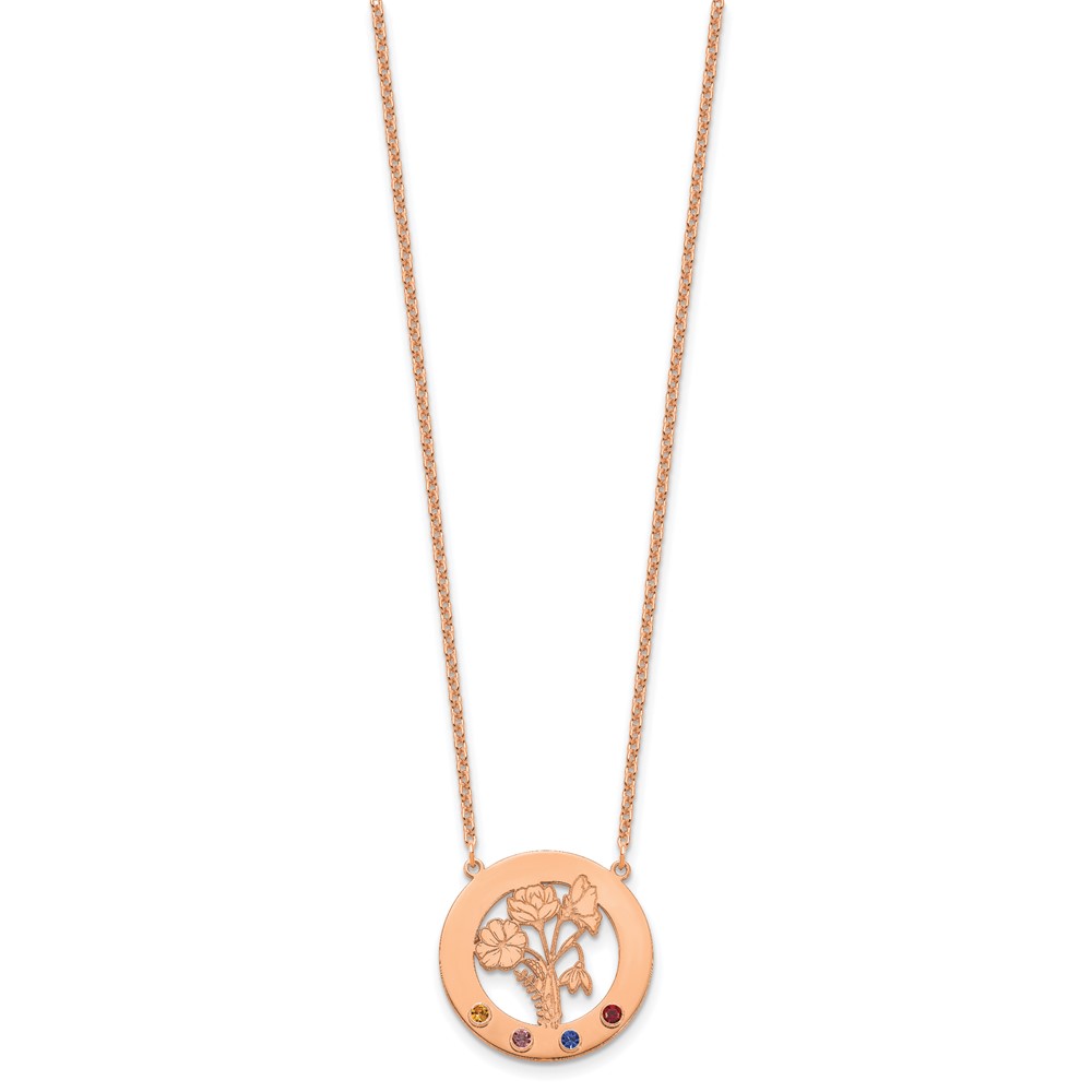 SS/Rose-plated Circle w/4 Birth Flower and Birthstone Necklace