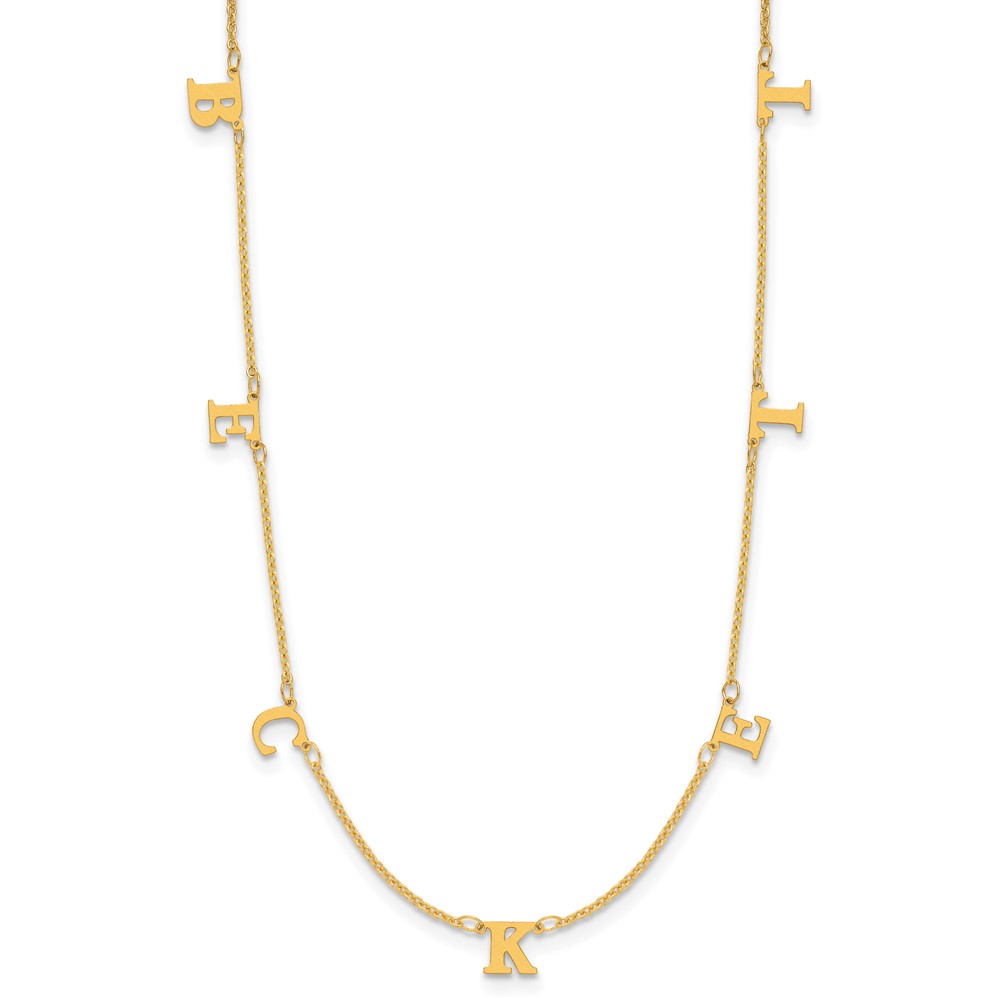 10ky Gold 7 Letter Dangle Necklace Satin Front/Back