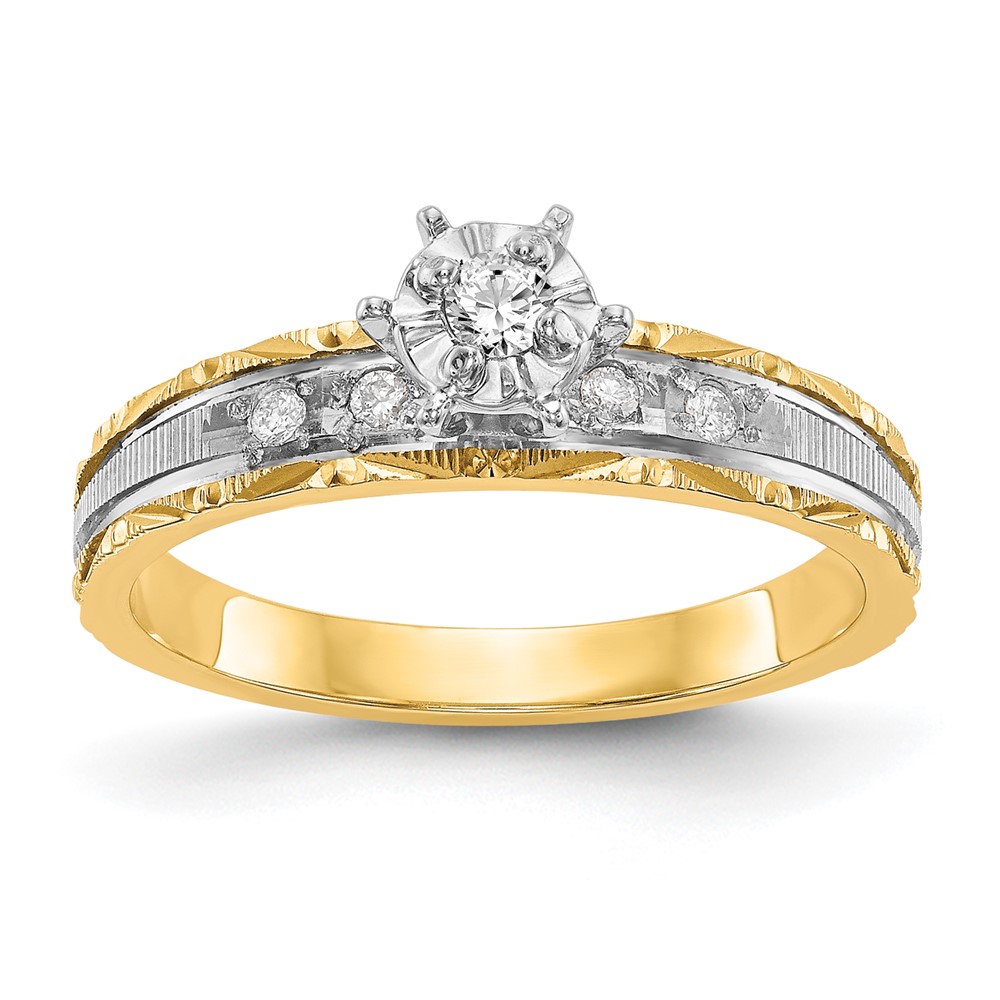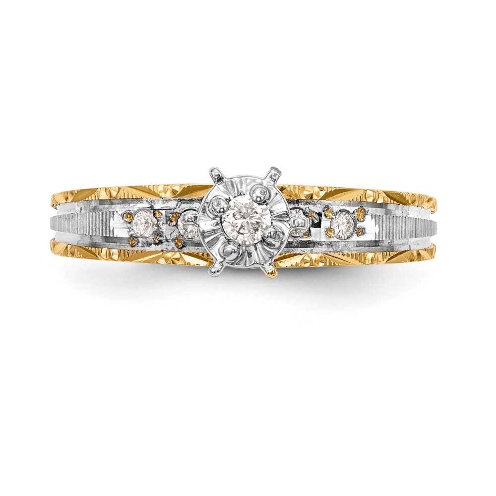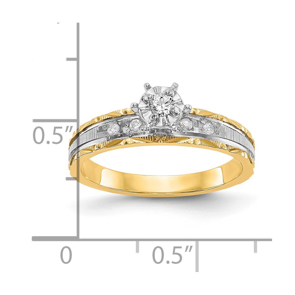 14k and Rhodium AA Quality 1/10 carat Diamond Trio Complete Engagement Ring