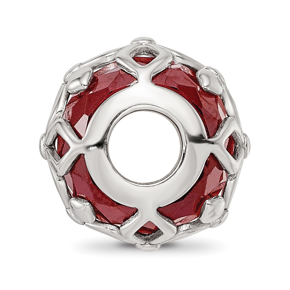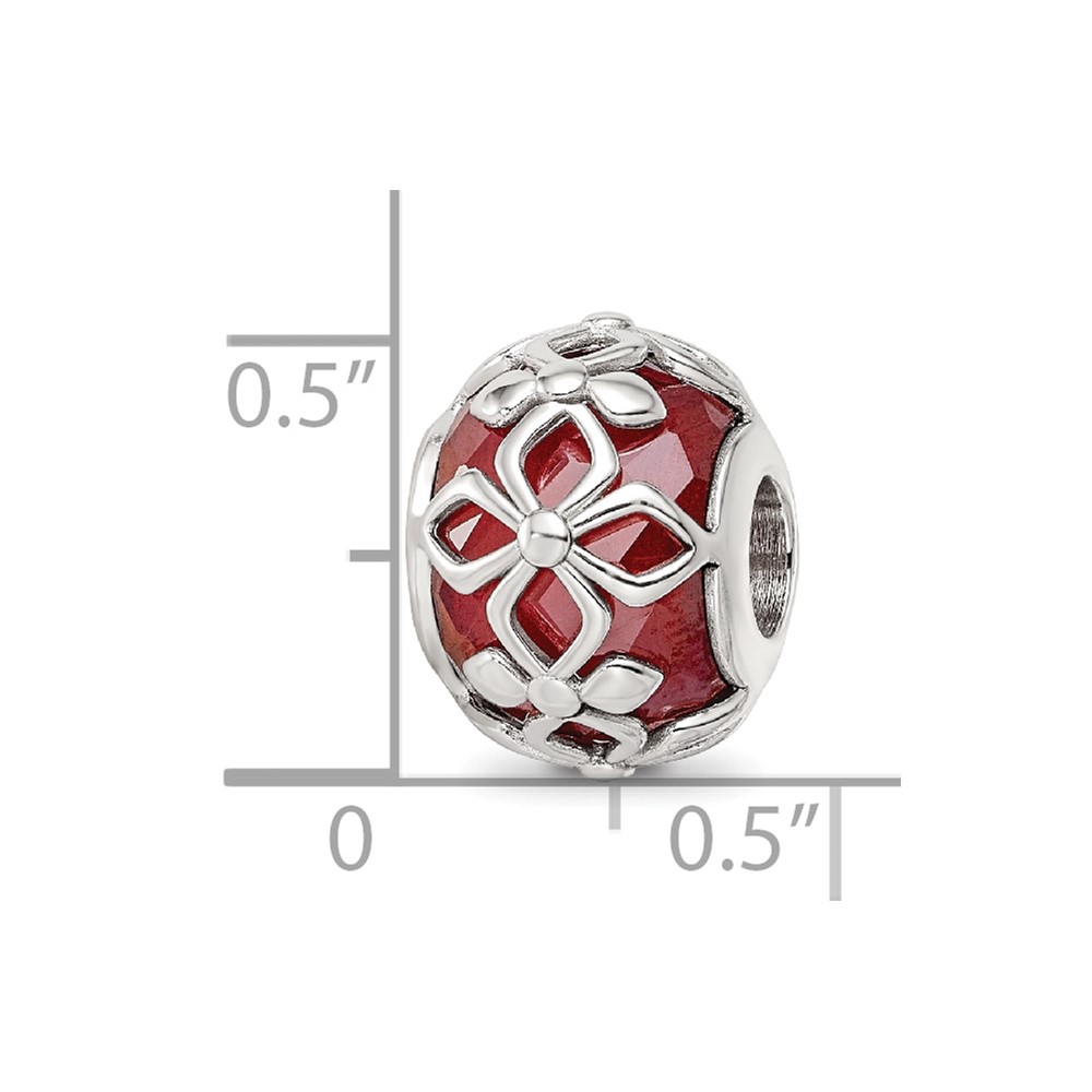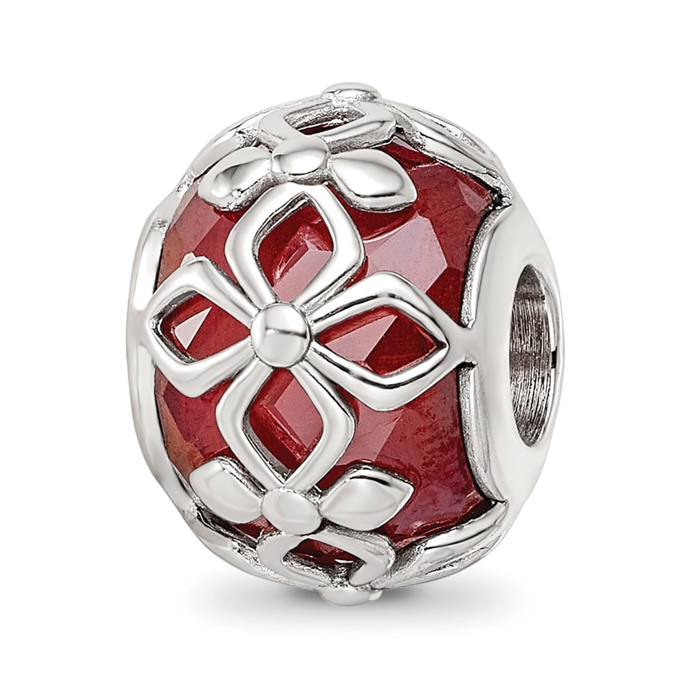 Sterling Silver Reflections Rhodium-plated Red CZ Floral Bead