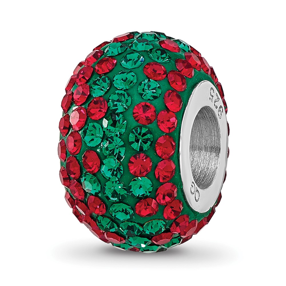 Sterling Silver Reflections RH-plated Red/Green Preciosa Crystal Bead