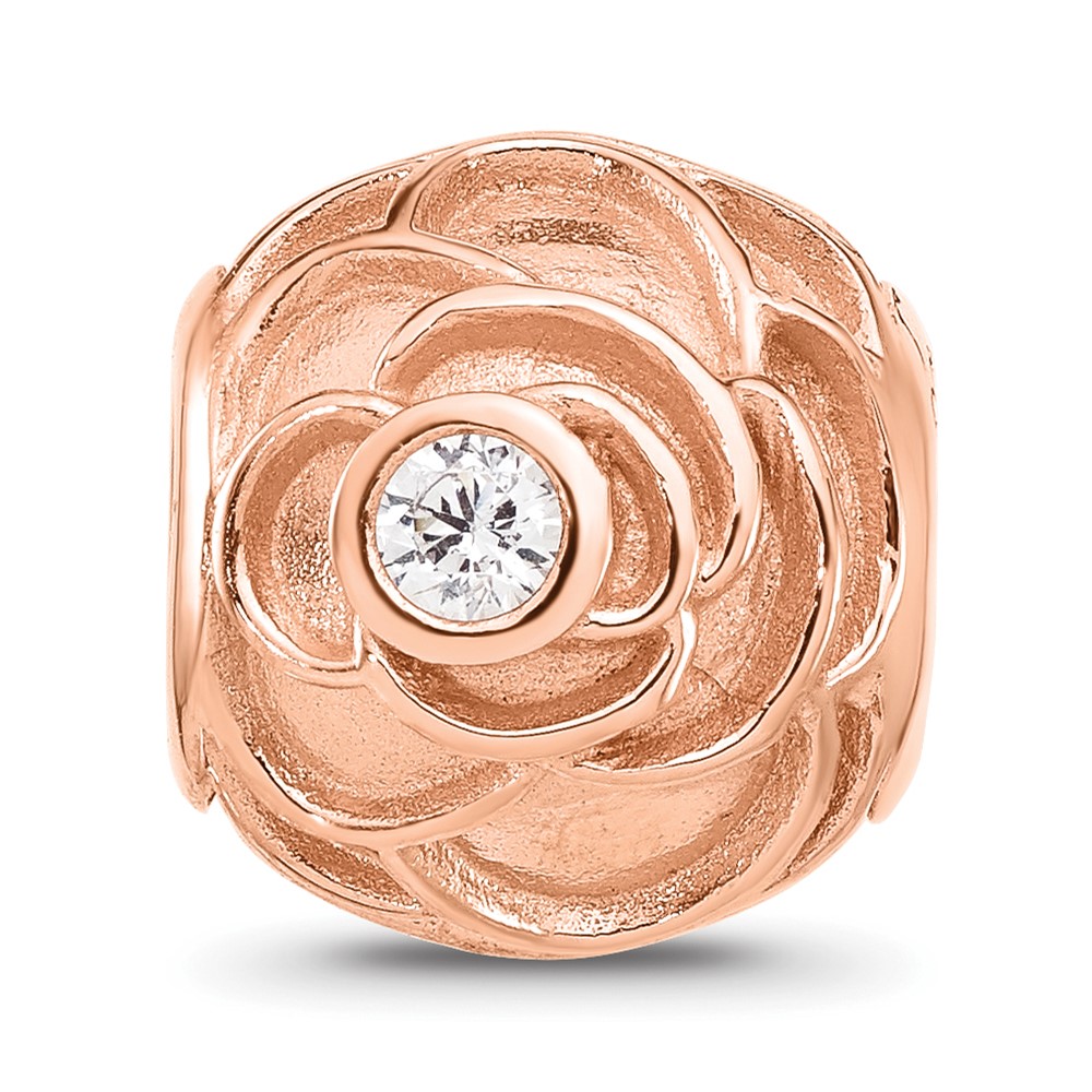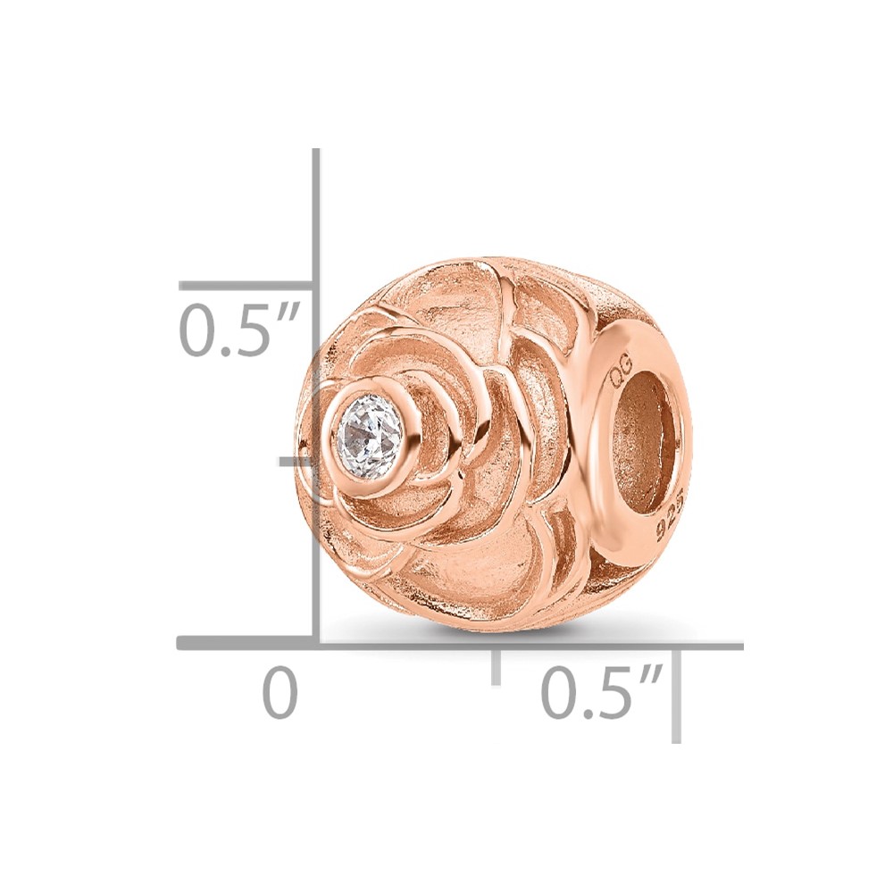 Sterling Silver Reflections Rose Gold-plated CZ Floral Rose Bead