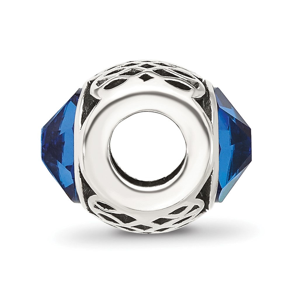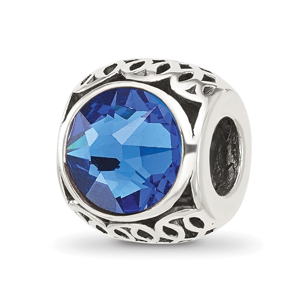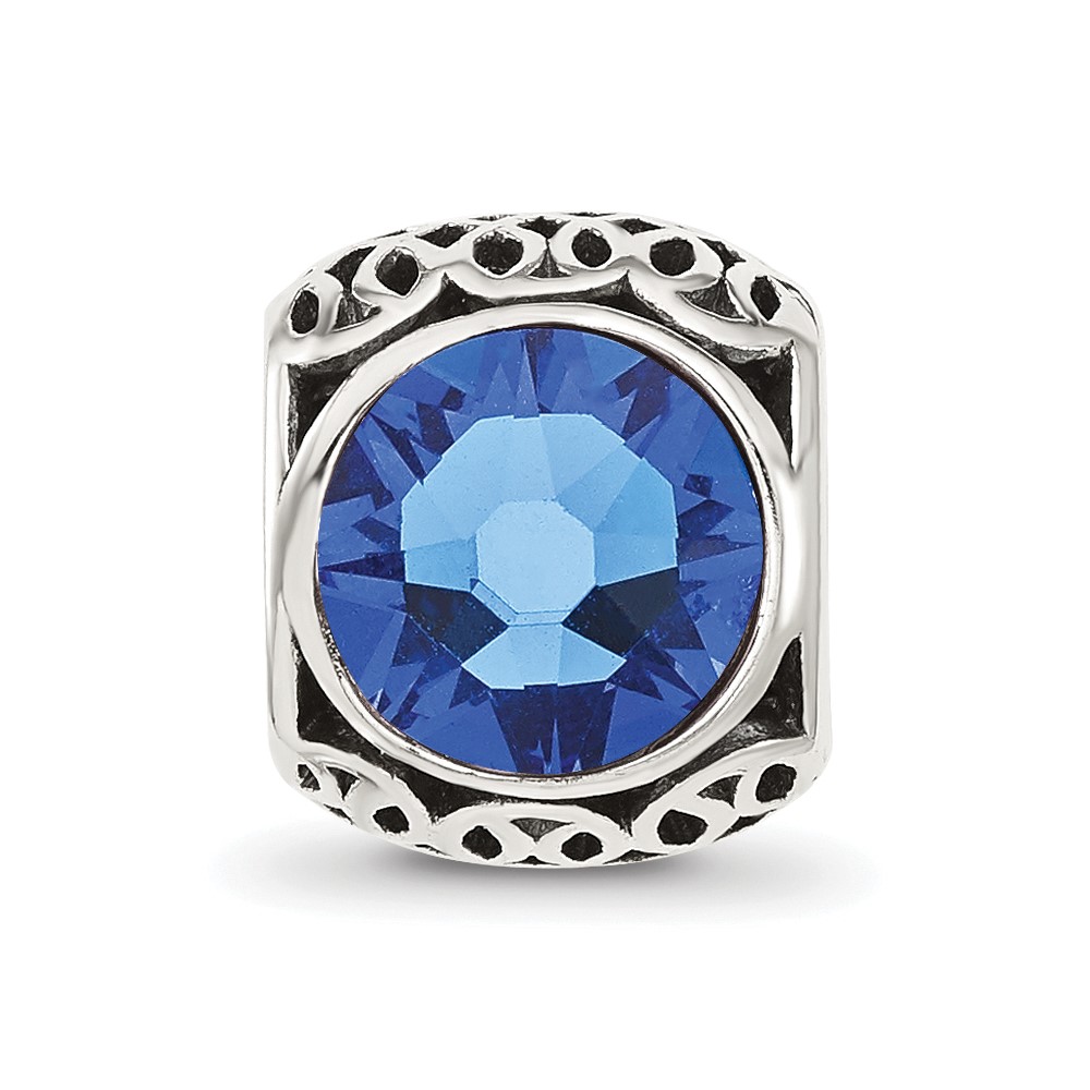 Sterling Silver Reflections Antiqued Blue Crystal Bead