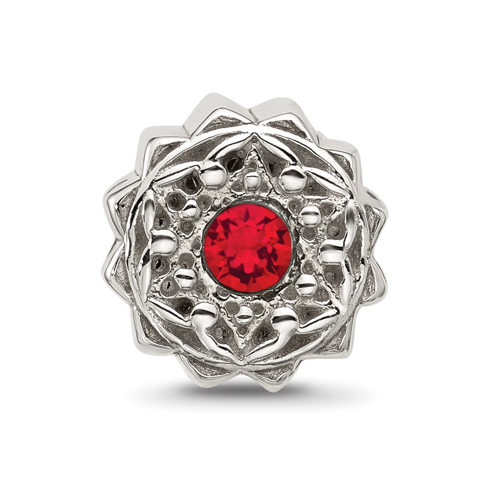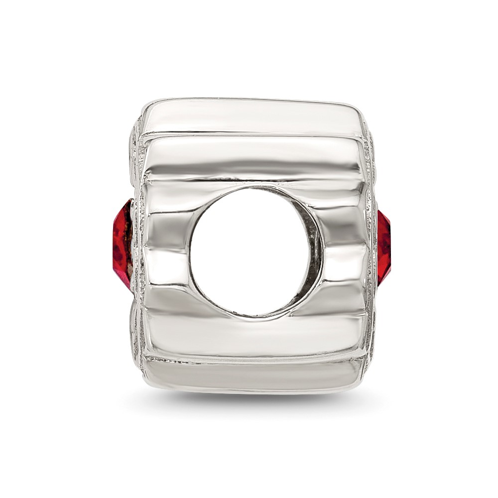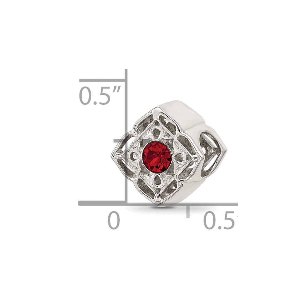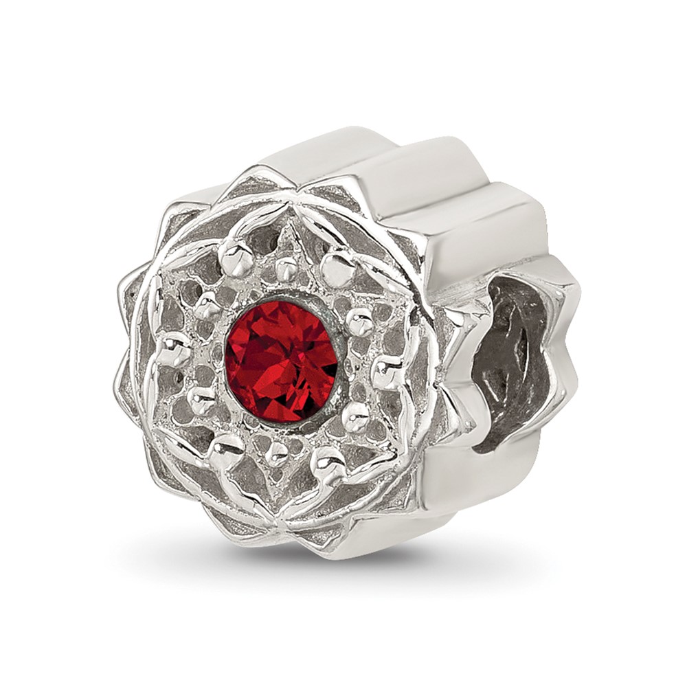 Sterling Silver Brushed And Polished Red Crystal Bead