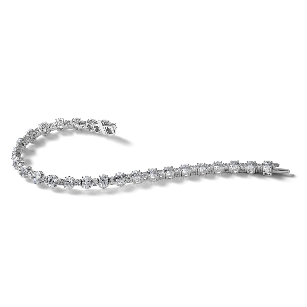 14k White Gold 11 carat Lab Grown Diamond VS/SI+ G+ Complete Round and Oval 7 inch Fancy Tennis Bracelet