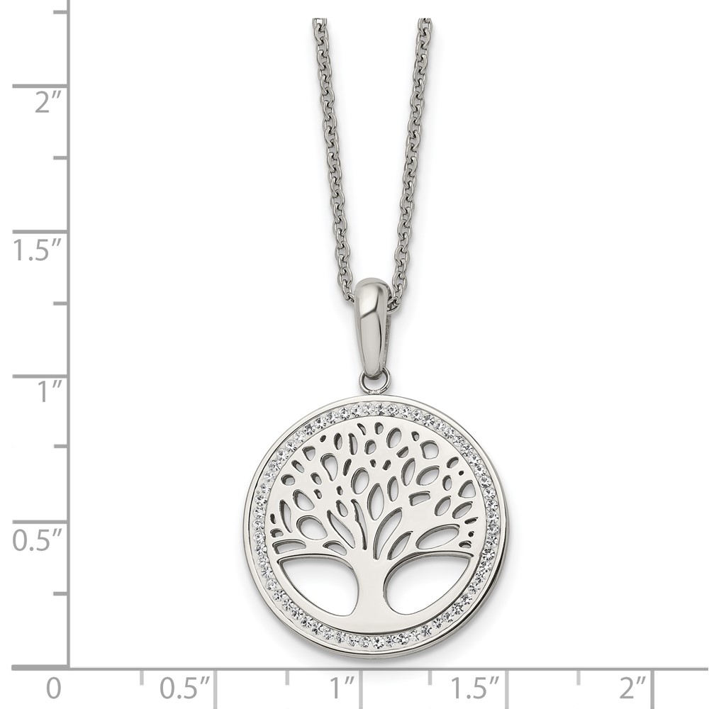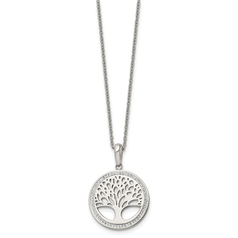 Chisel Stainless Steel Polished with Preciosa Crystal Tree of Life Pendant on a 16 inch Cable Chain with 2 inch Extension Necklace