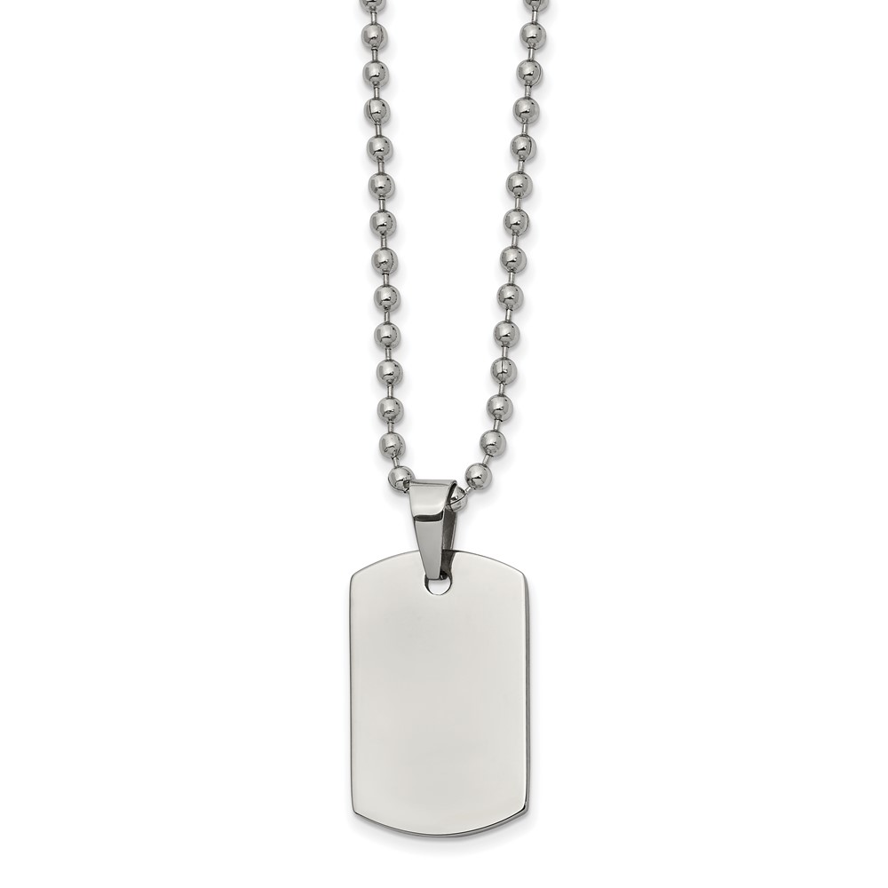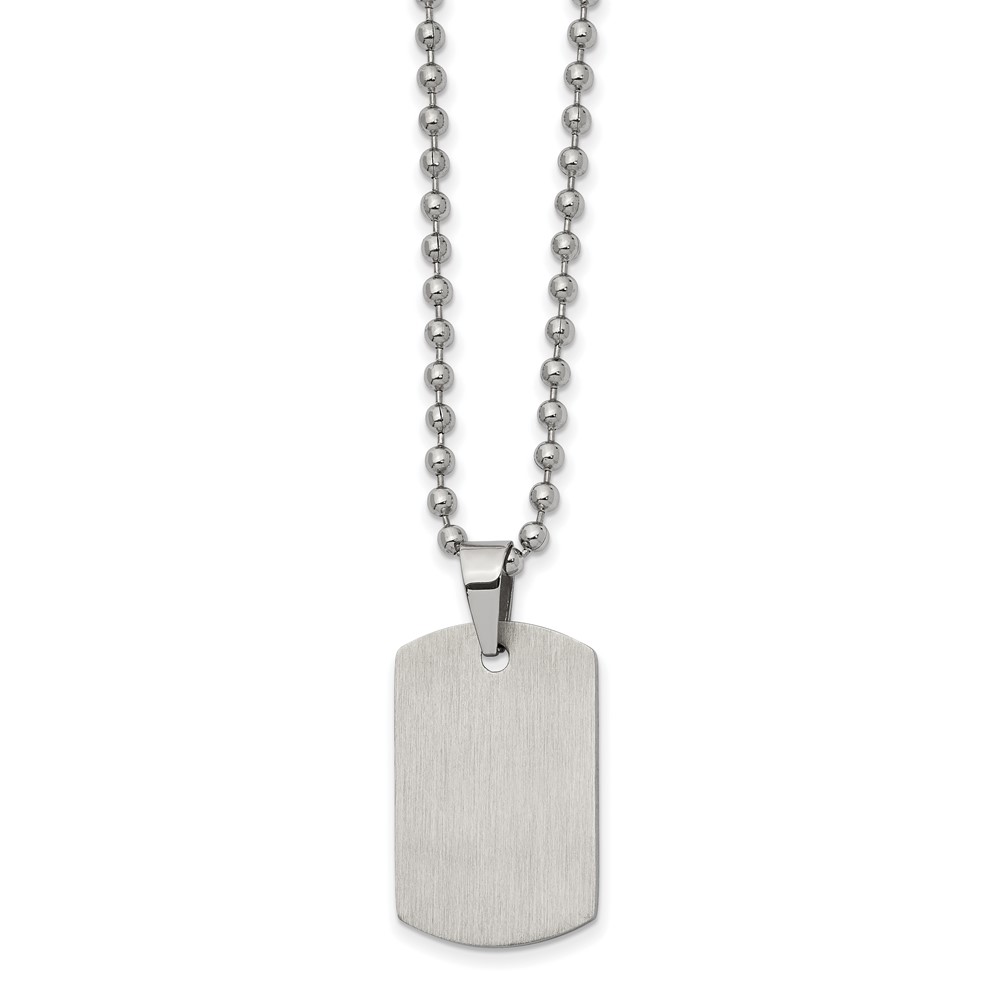 Chisel Stainless Steel Brushed and Polished Reversible Dog Tag on a 22 inch Ball Chain Necklace