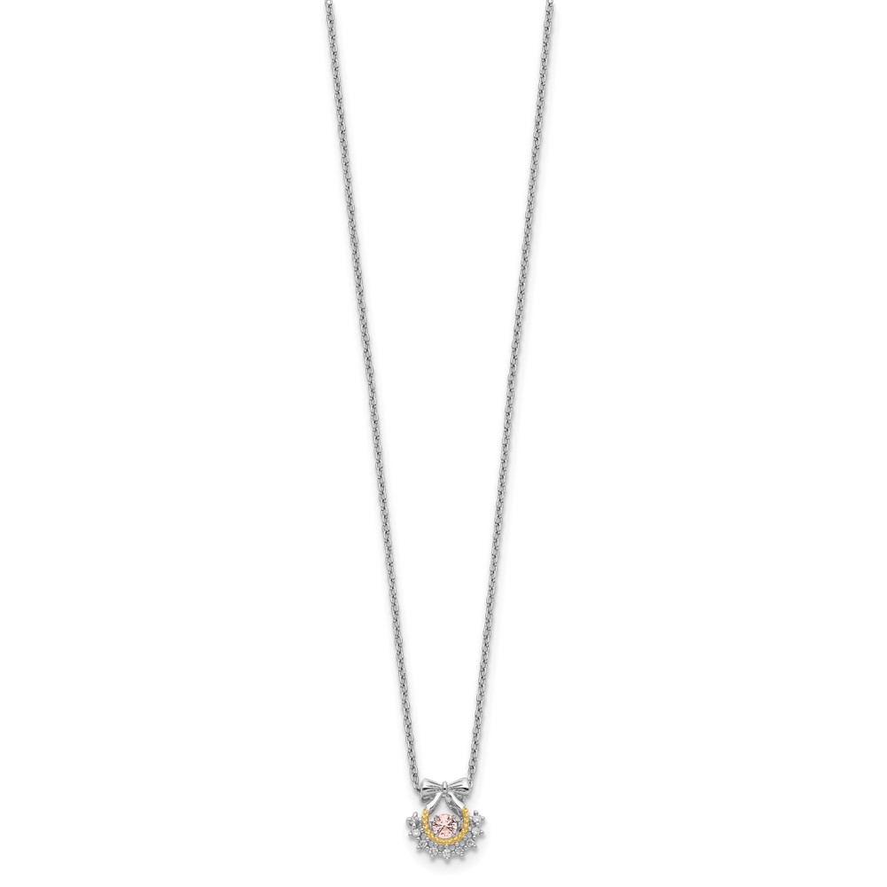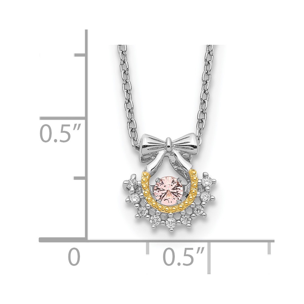 Sterling Silver RH-pltd Gold-tone Moving Pink CZ w/2in ext Necklace