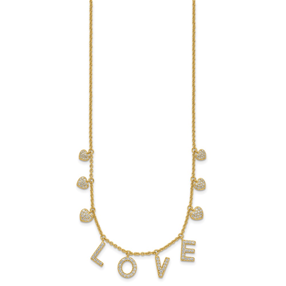 Sterling Silver Gold-tone CZ LOVE w/2in ext Necklace